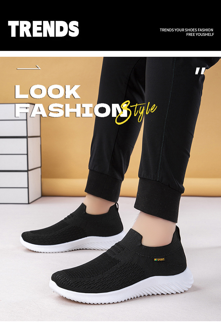 새로운 봄과 가을 여름 스포츠 캐주얼 남성 신발 통기성 비행 짠 양말 입 메쉬 천스토어 가기