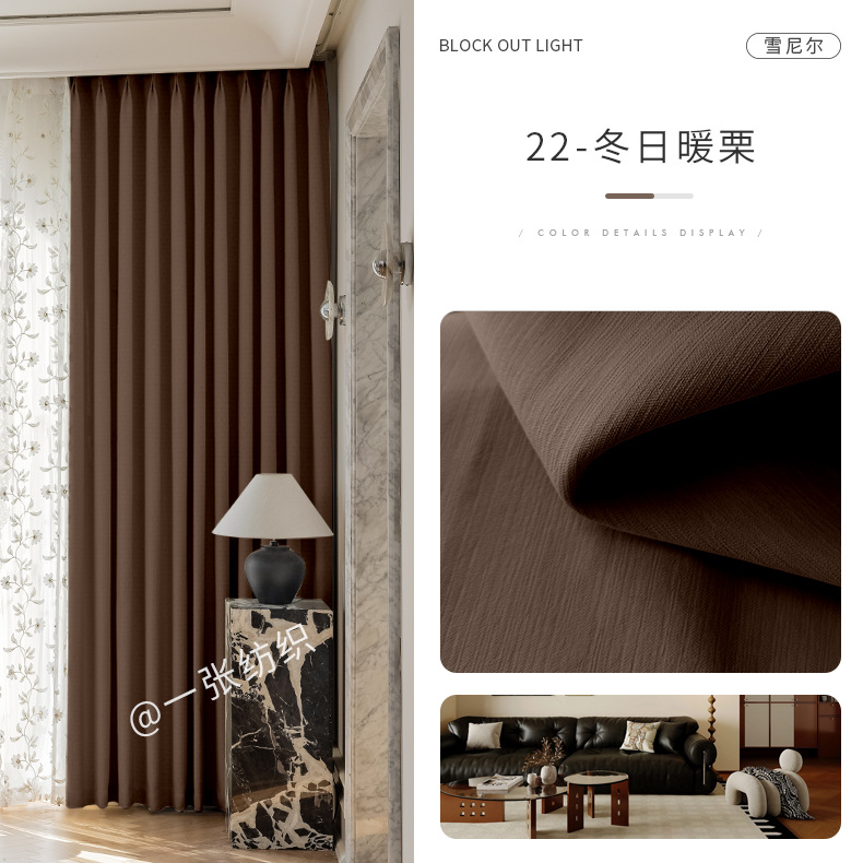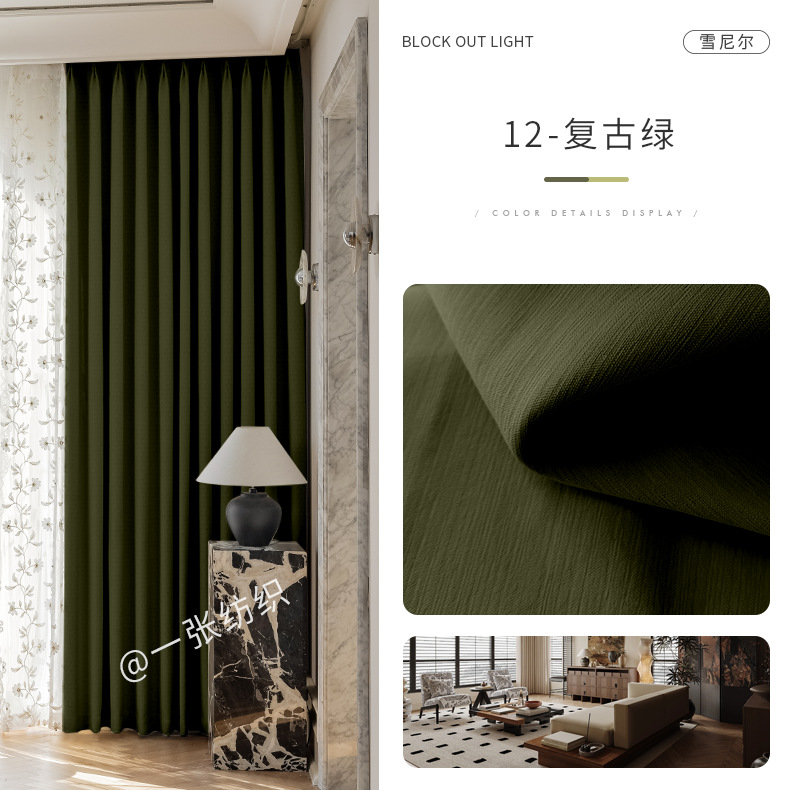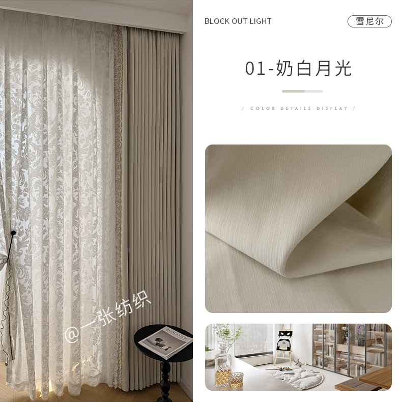 전체 음영 양면 체닐 커튼 거실 침실 크림 스타일 고급 조명 프랑스 두꺼운 단열 자외선 차단제