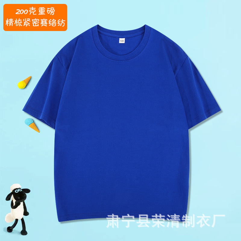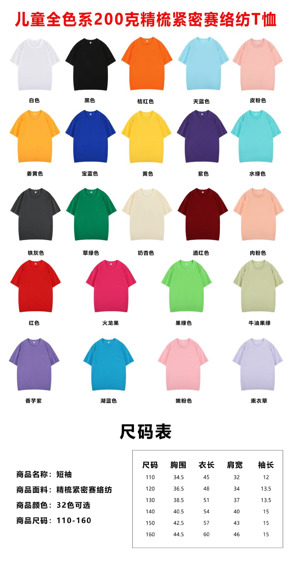 여름 빗 퓨어 코튼 어린이 티셔츠 솔리드 컬러 라운드 넥 짧은 소매 크기 어린이 캐주얼 반소매 클래스 원피스 졸업 원피스 DIY스토어 가기