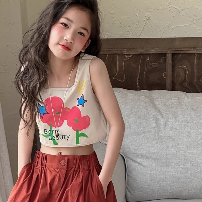 여자 여름 조끼 슬링 아기 세련된 어린이 성격 유행 브랜드 유행 인터넷 축하 달콤한 꽃 짧은 탑스토어 가기