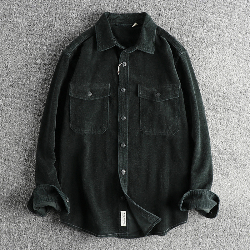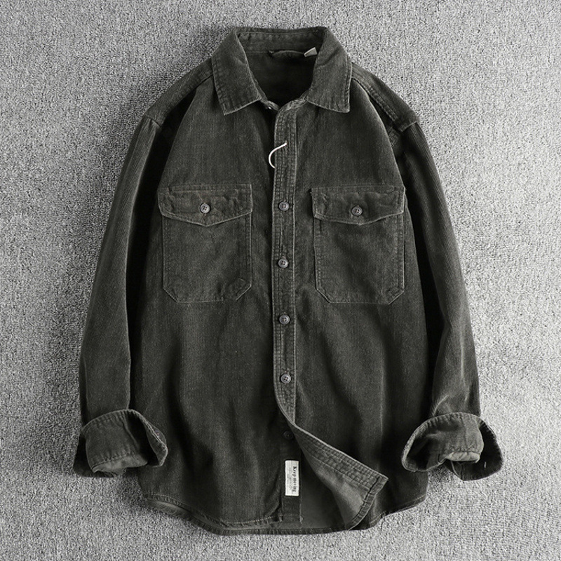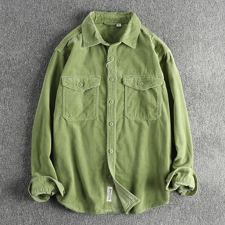 Amei 카키 레트로 코듀로이 코튼 긴팔 셔츠 남성용 작업복 포켓 루즈 다용도 핏 셔츠 재킷