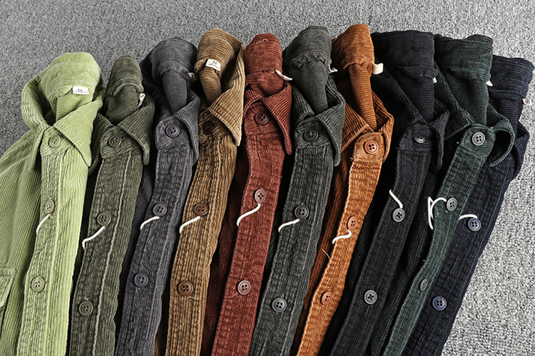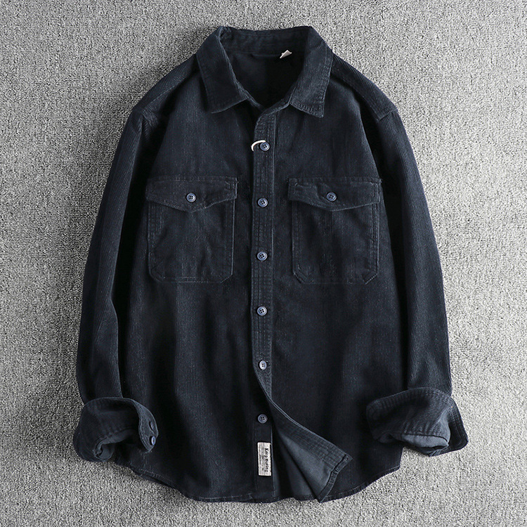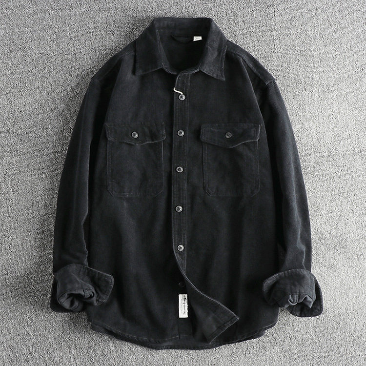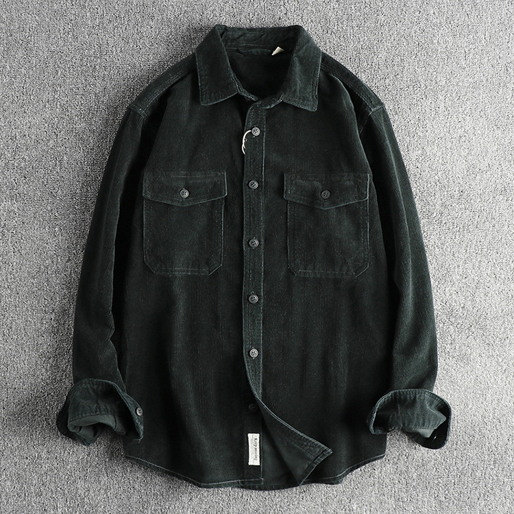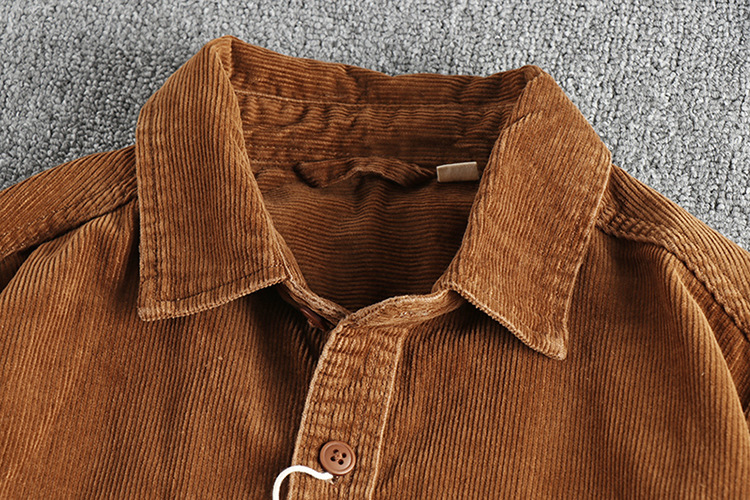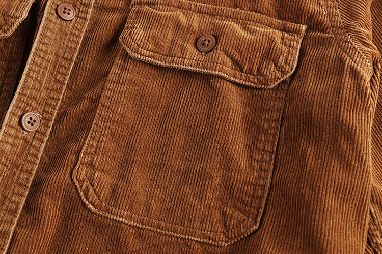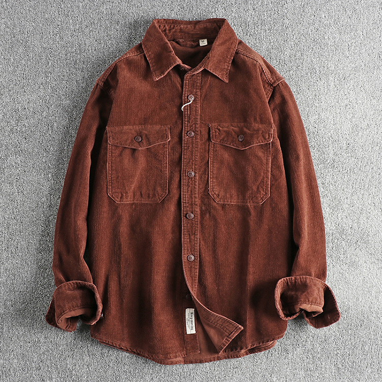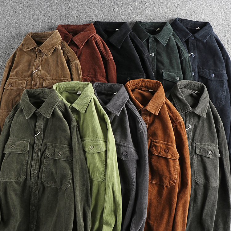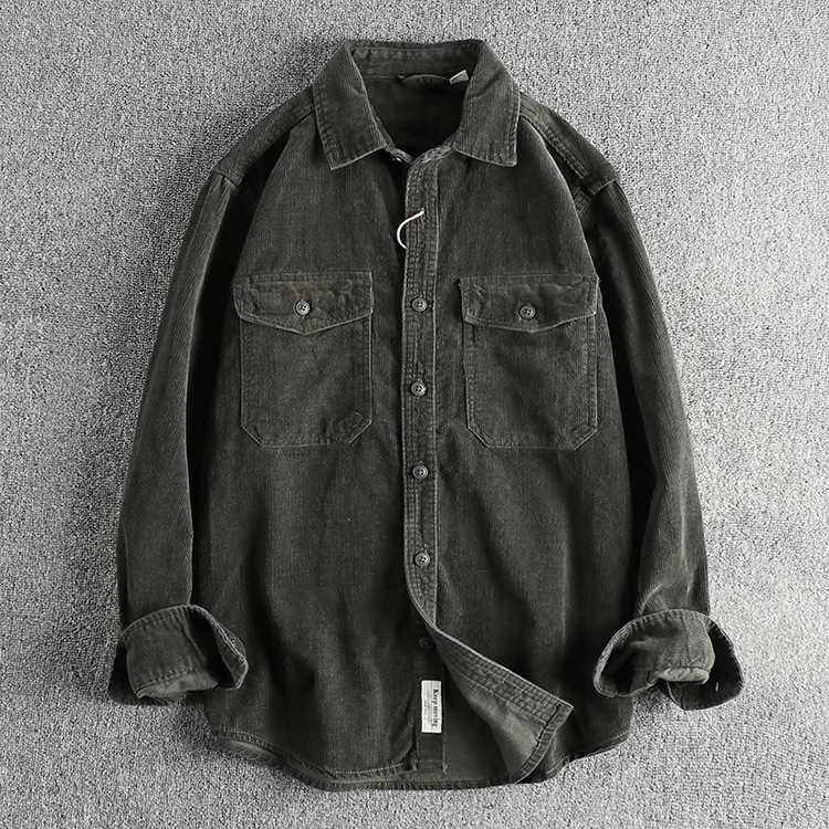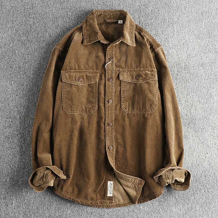 Amei 카키 레트로 코듀로이 코튼 긴팔 셔츠 남성용 작업복 포켓 루즈 다용도 핏 셔츠 재킷스토어 가기