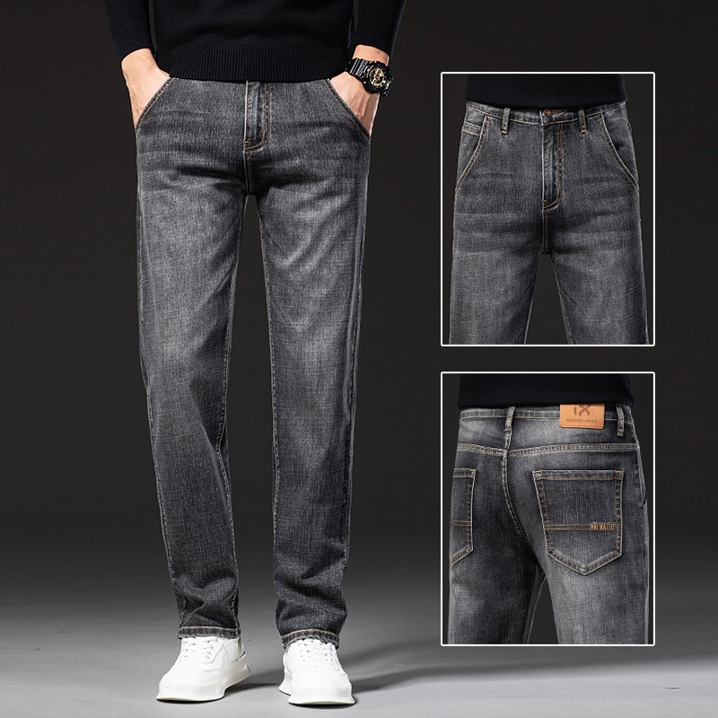 남성용 청바지 가을 얇은 스타일 청년용 루즈핏 스트레이트 팬츠 트렌디 남성 바지 하이웨이스트 다용도 업무용 바지 남성용