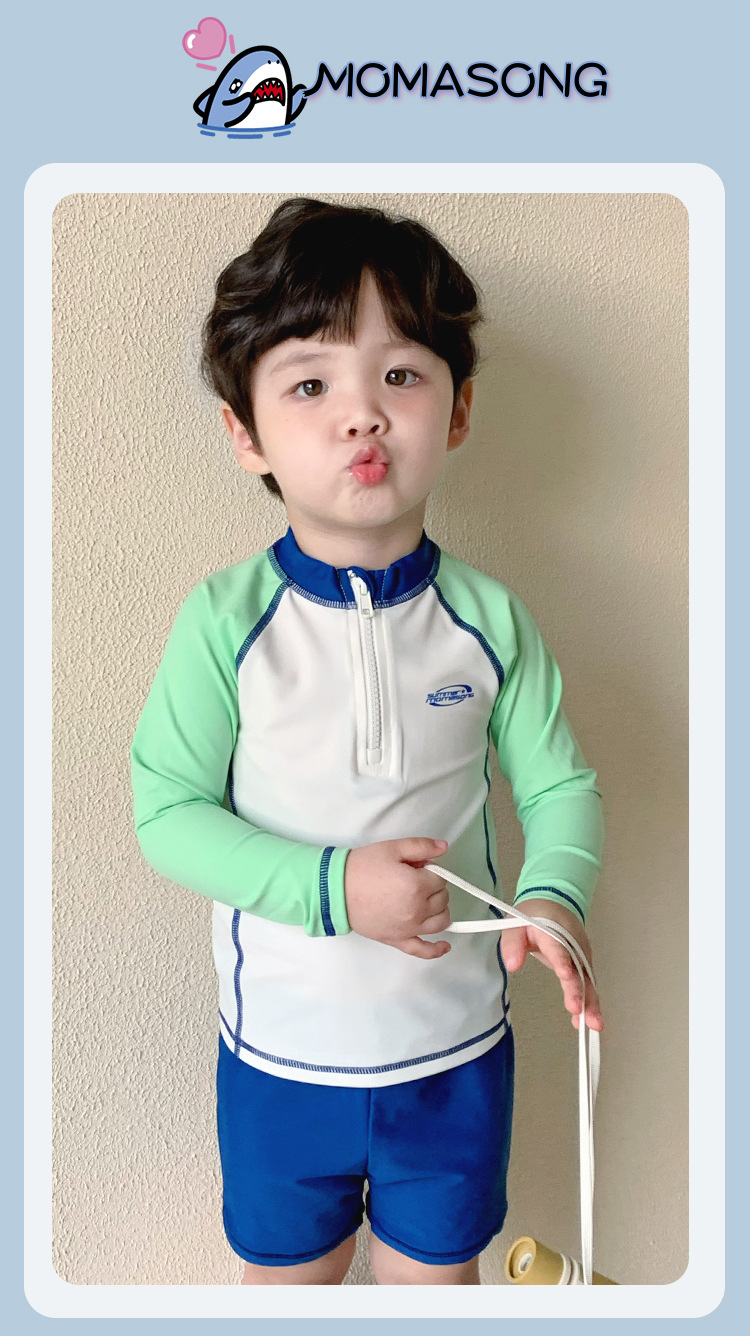 모마 송 어린이 선 스크린 분할 수영복 새로운 도착 긴 소매 퀵 드라이 수영복 베이비 보이즈 비치 수영복