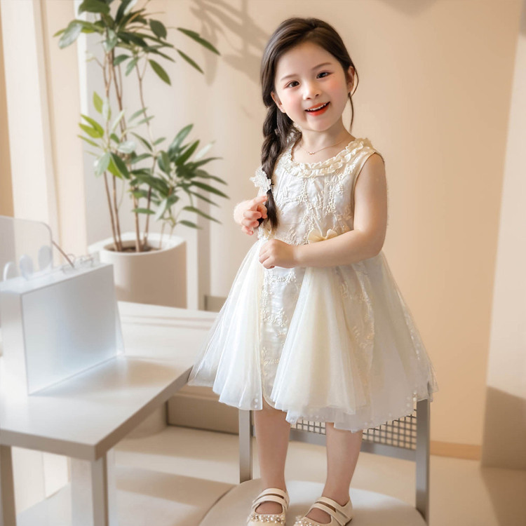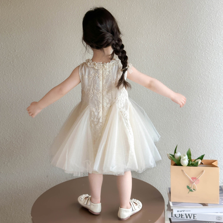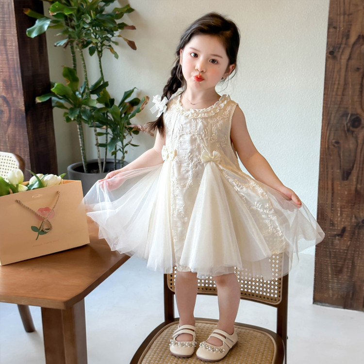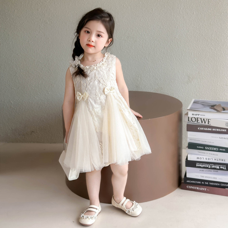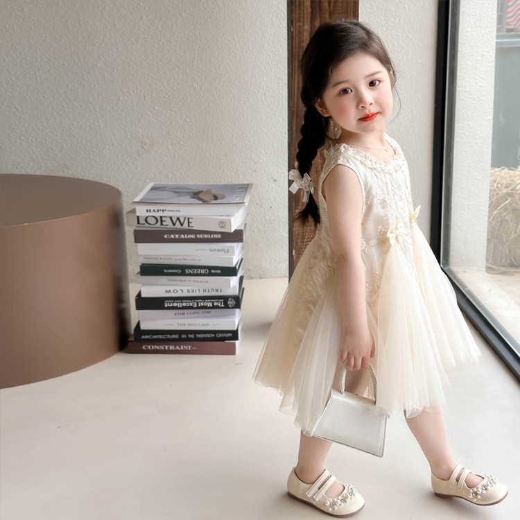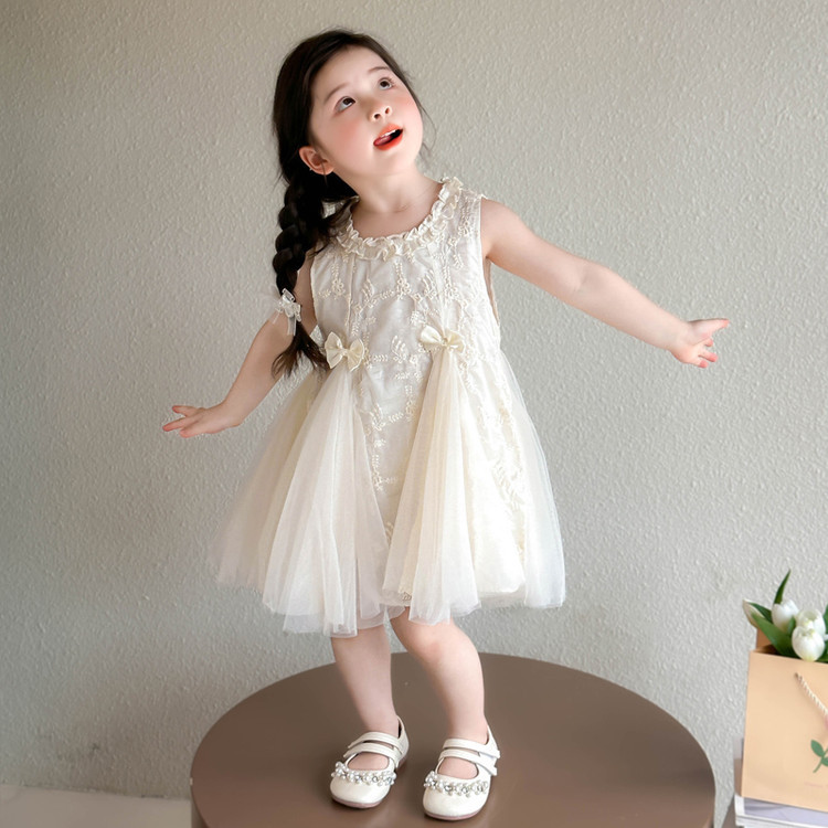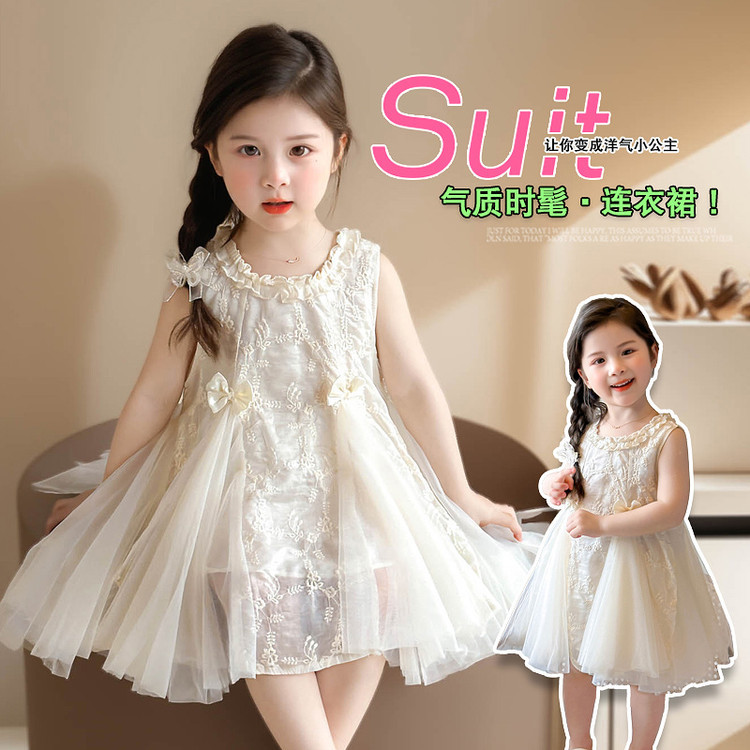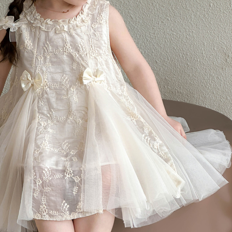 소녀의 활 원피스 2025 새로운 어린이 여름 스티칭 메쉬 공주 원피스 소녀의 Vat 원피스 트렌디스토어 가기