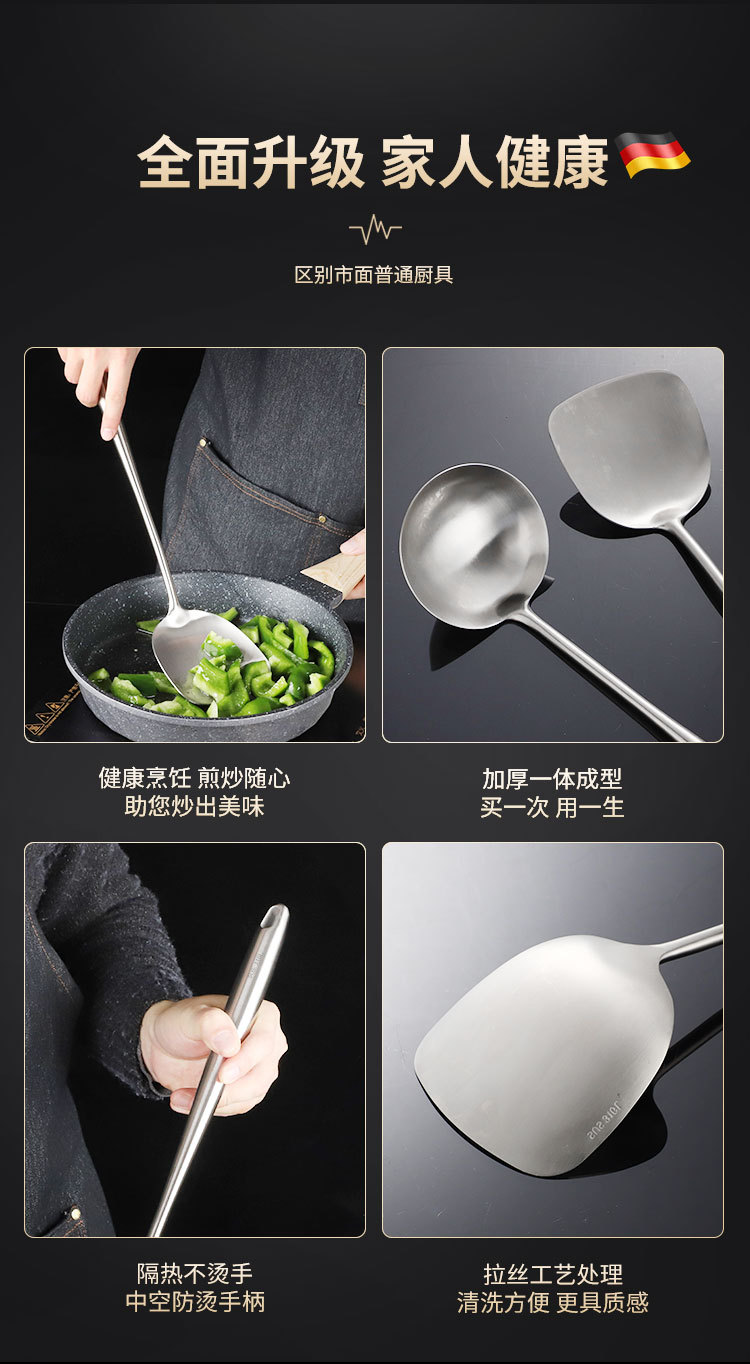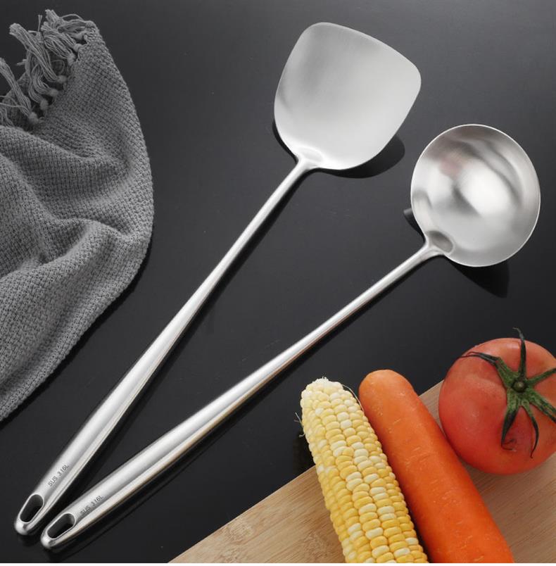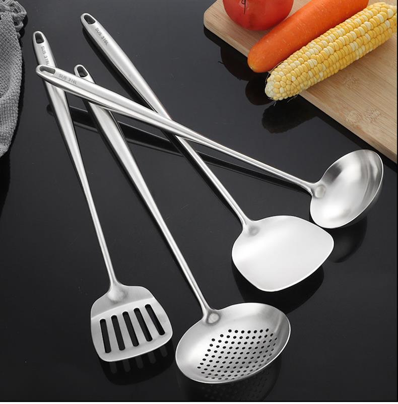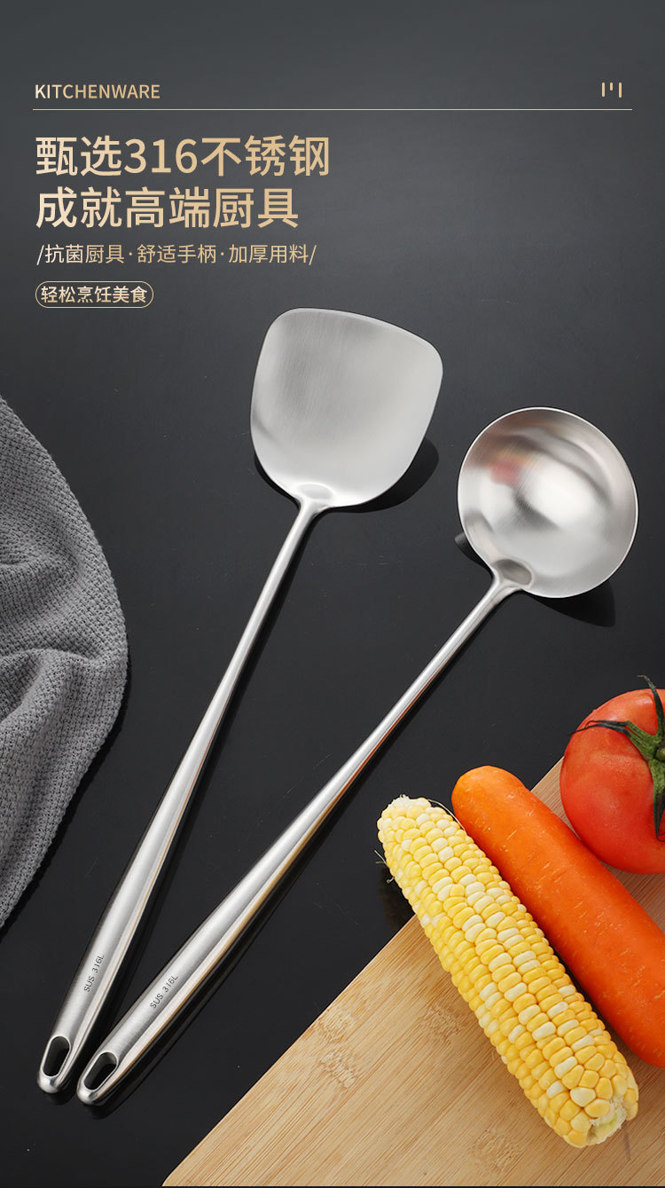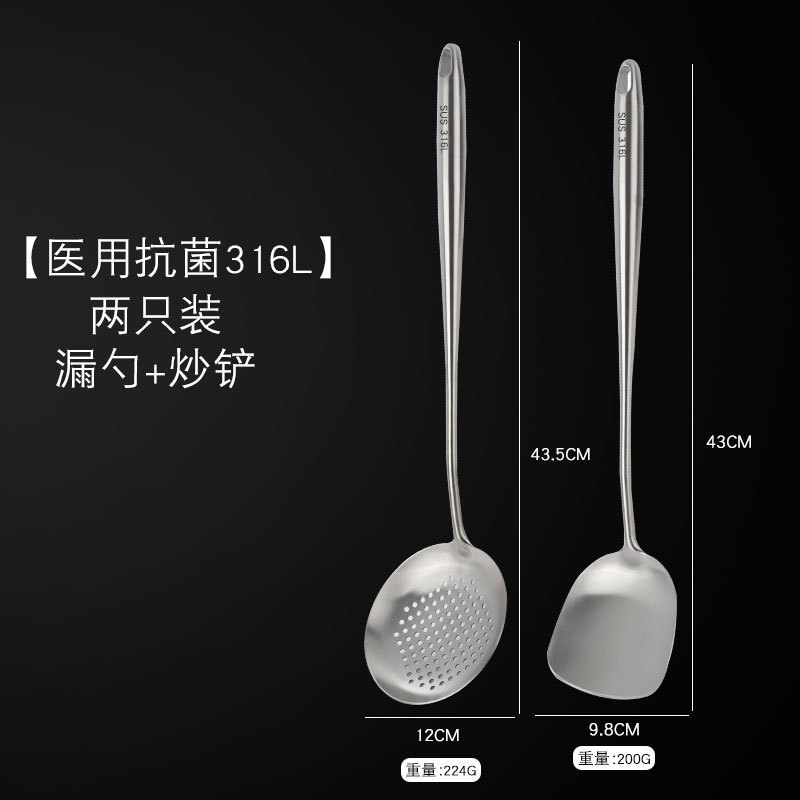 • 항균 316 스테인레스 스틸 프라이팬 스푼 + 튀김 주걱 두꺼워지고 확장된 버전은 304보다 좋은 소재입니다.