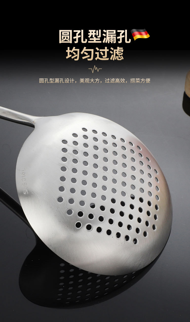 • 항균 316 스테인레스 스틸 튀김 주걱 + 튀김 주걱 두꺼워지고 확장 된 버전은 304보다 좋은 소재입니다.