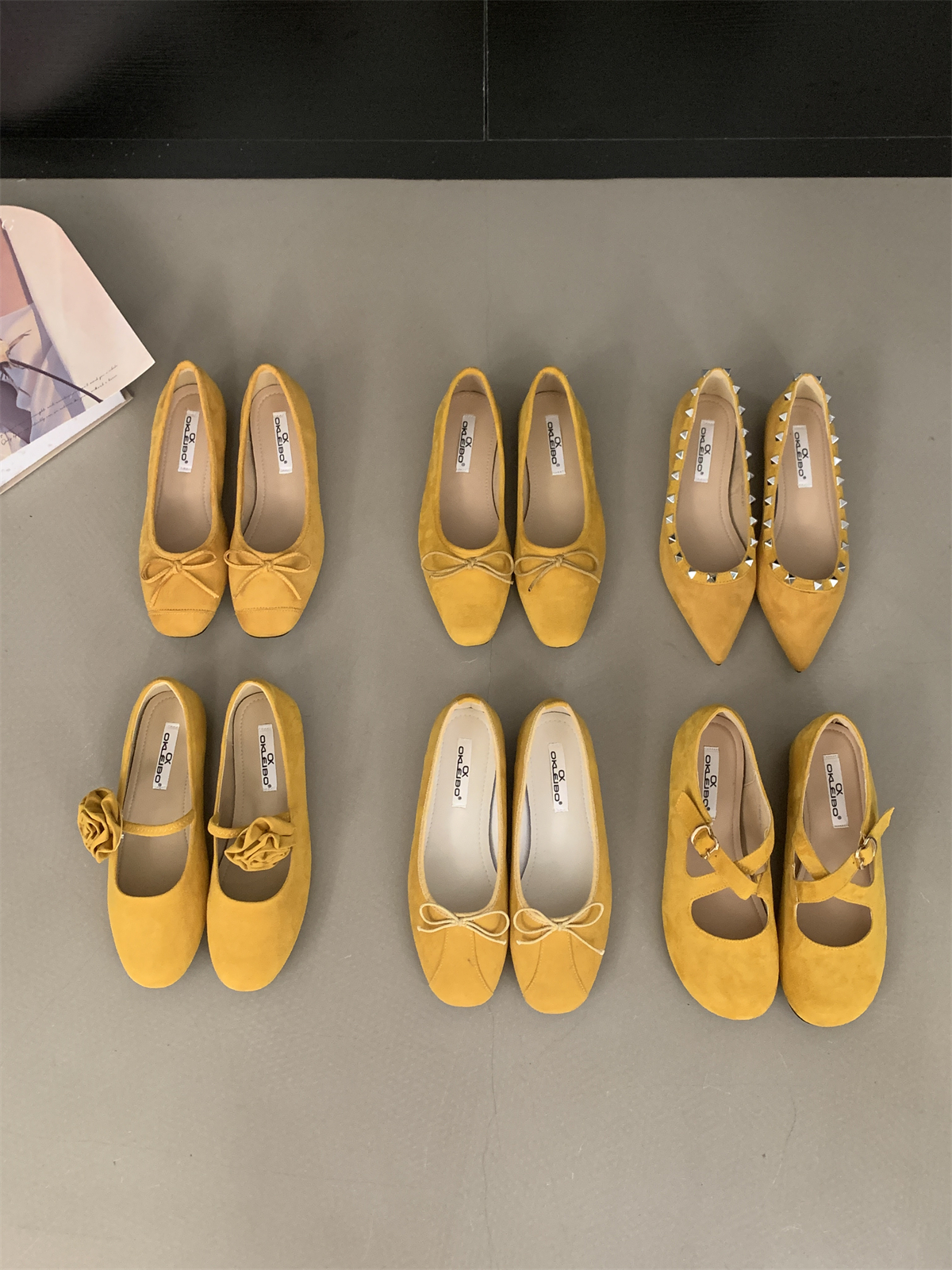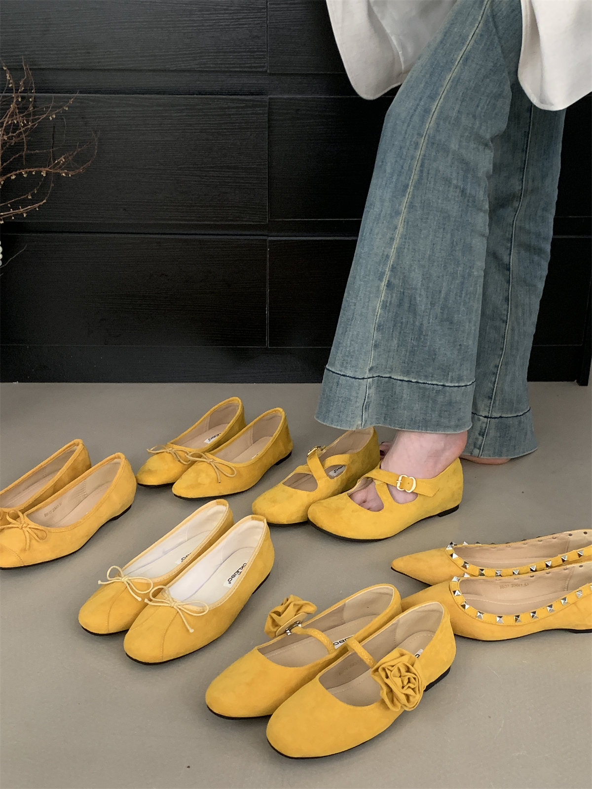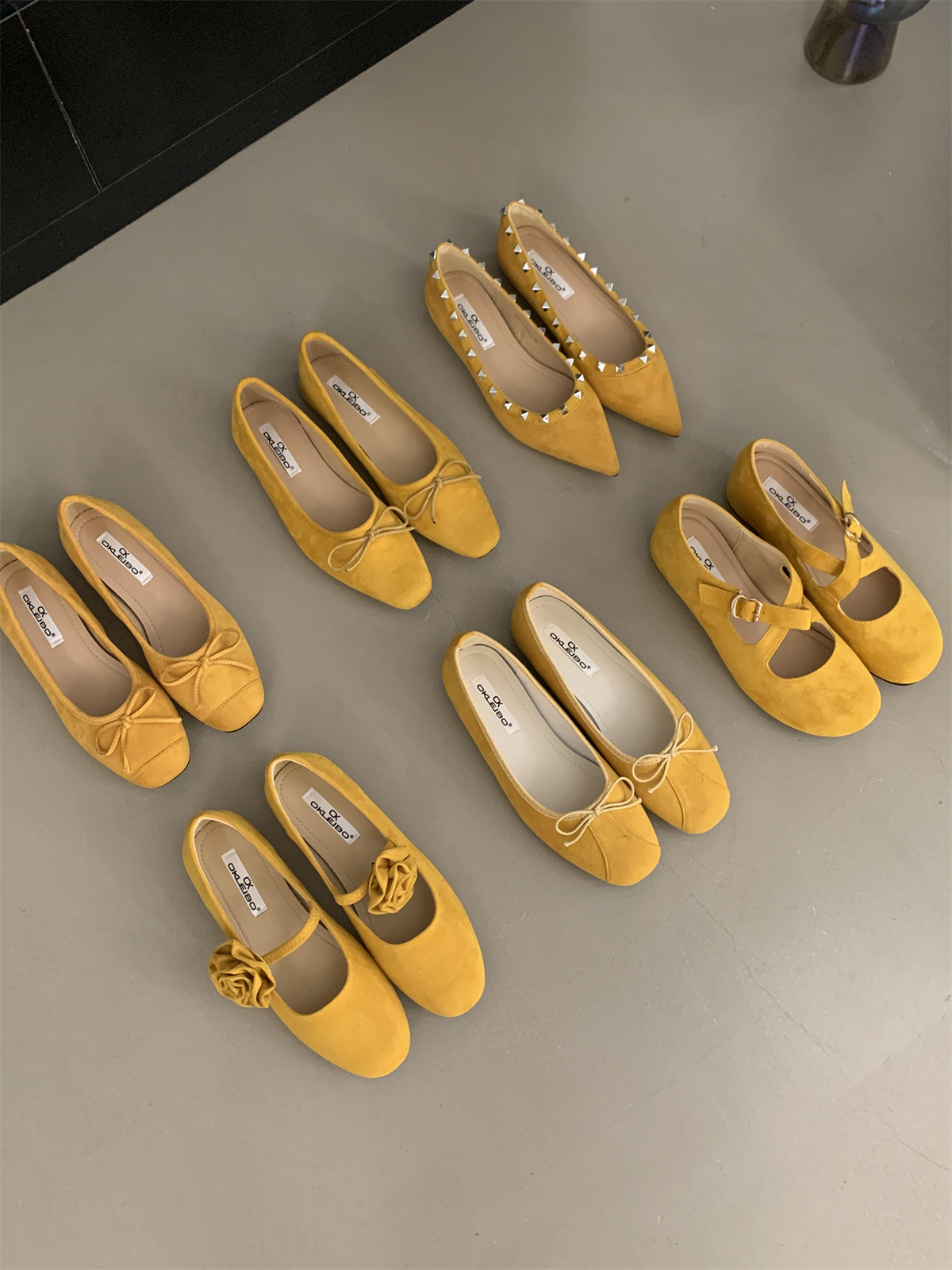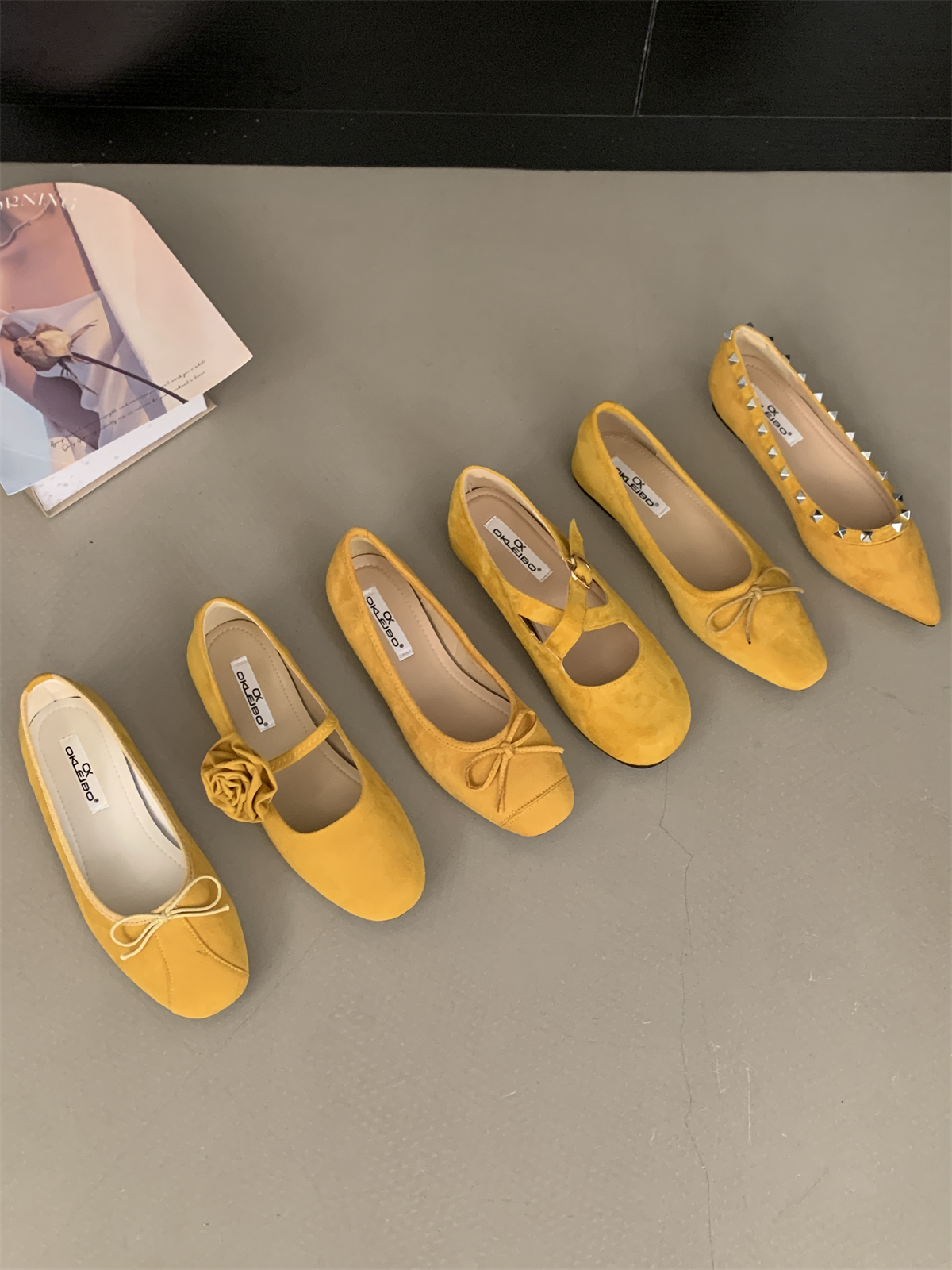프랑스 스타일 레트로 발레 신발 여성 2025 봄 새로운 도착 활 요정 부드러운 노란색 메리 제인 신발스토어 가기