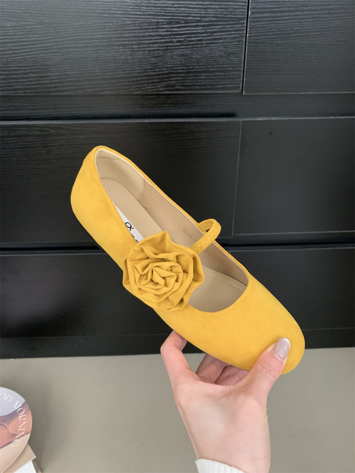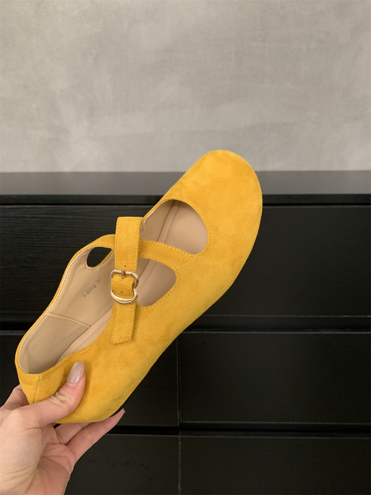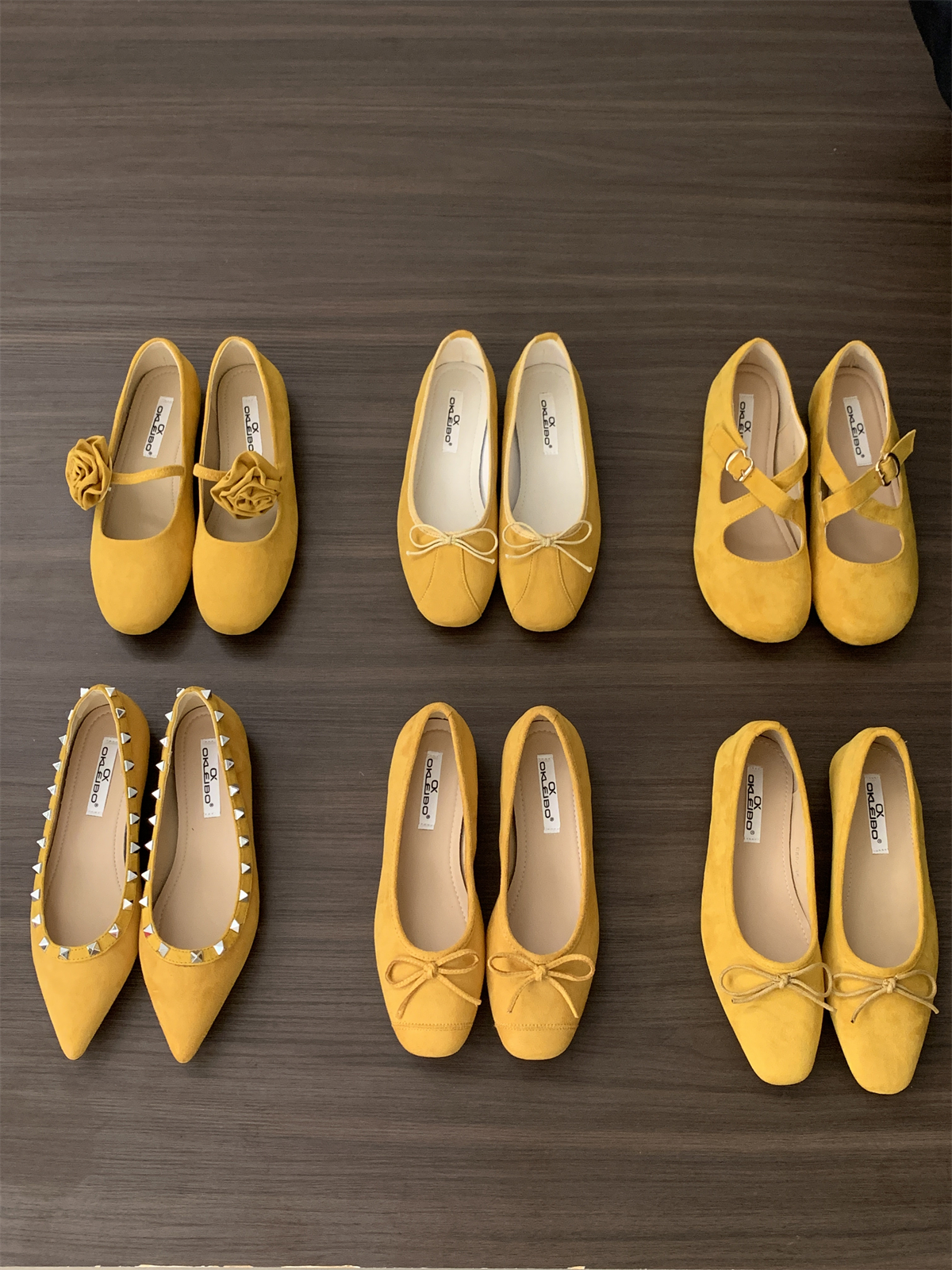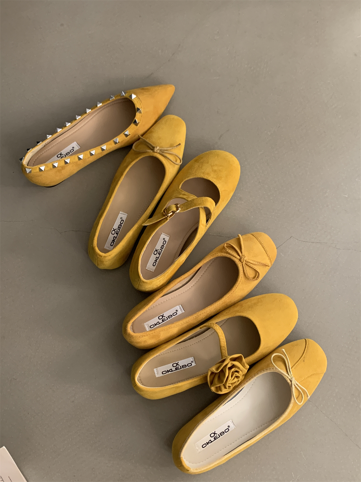 프랑스 스타일 레트로 발레 신발 여성 2025 봄 새로운 도착 활 요정 부드러운 노란색 메리 제인 신발스토어 가기
