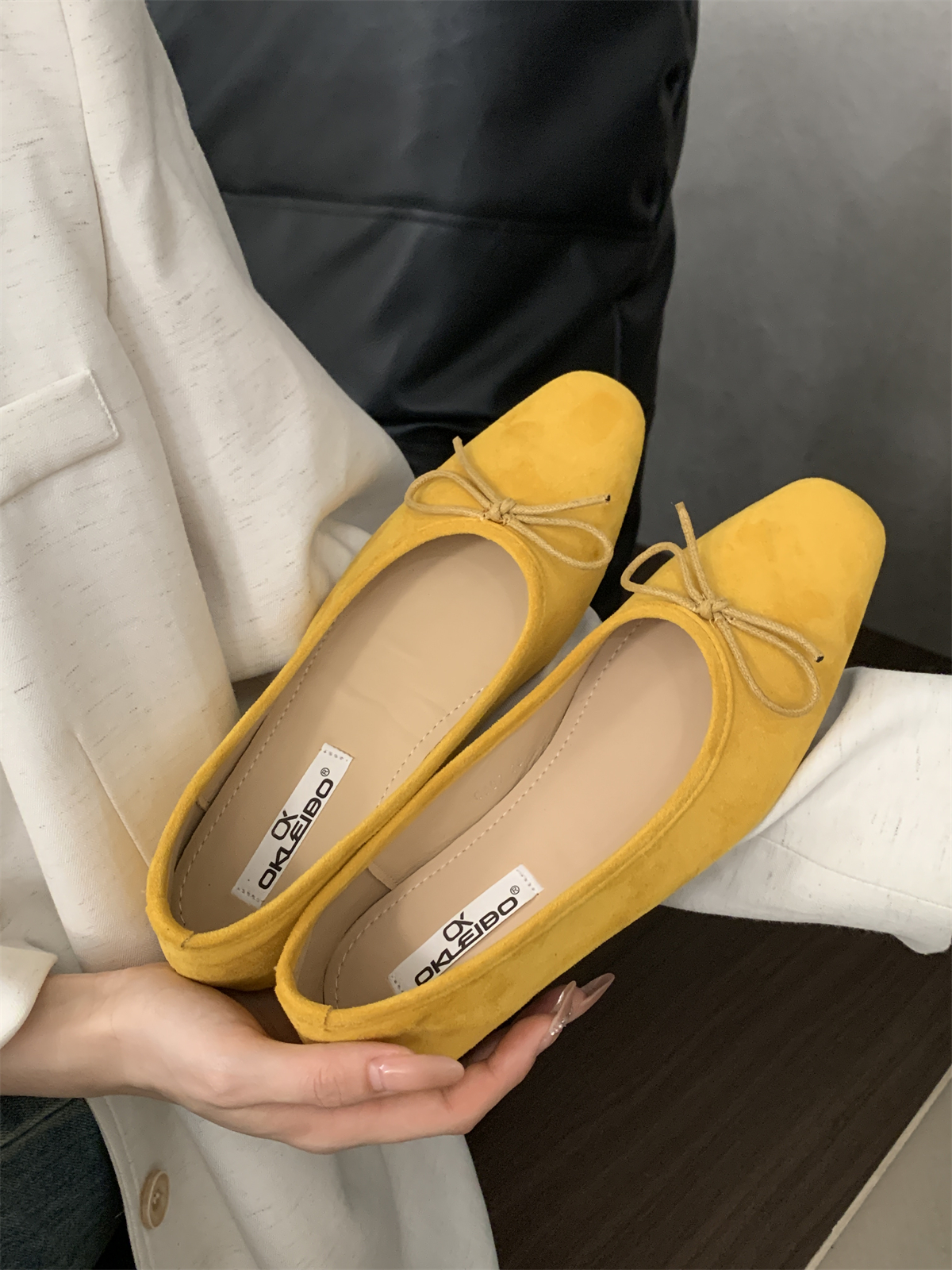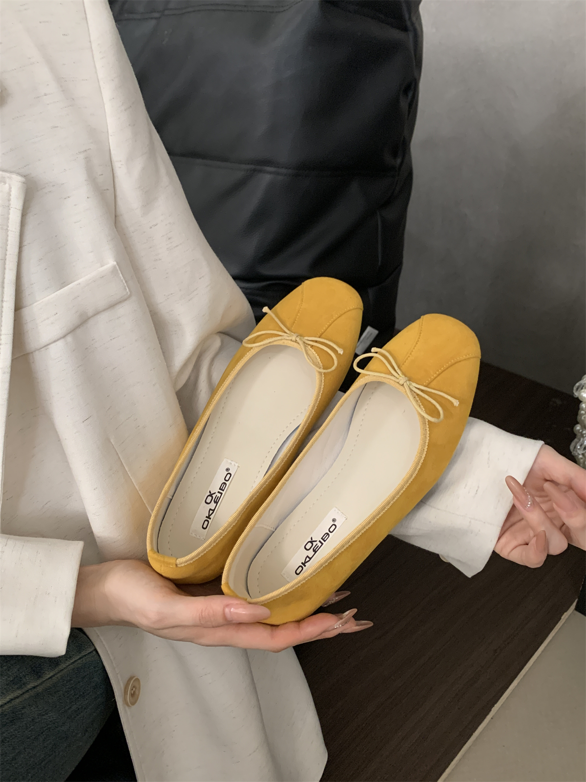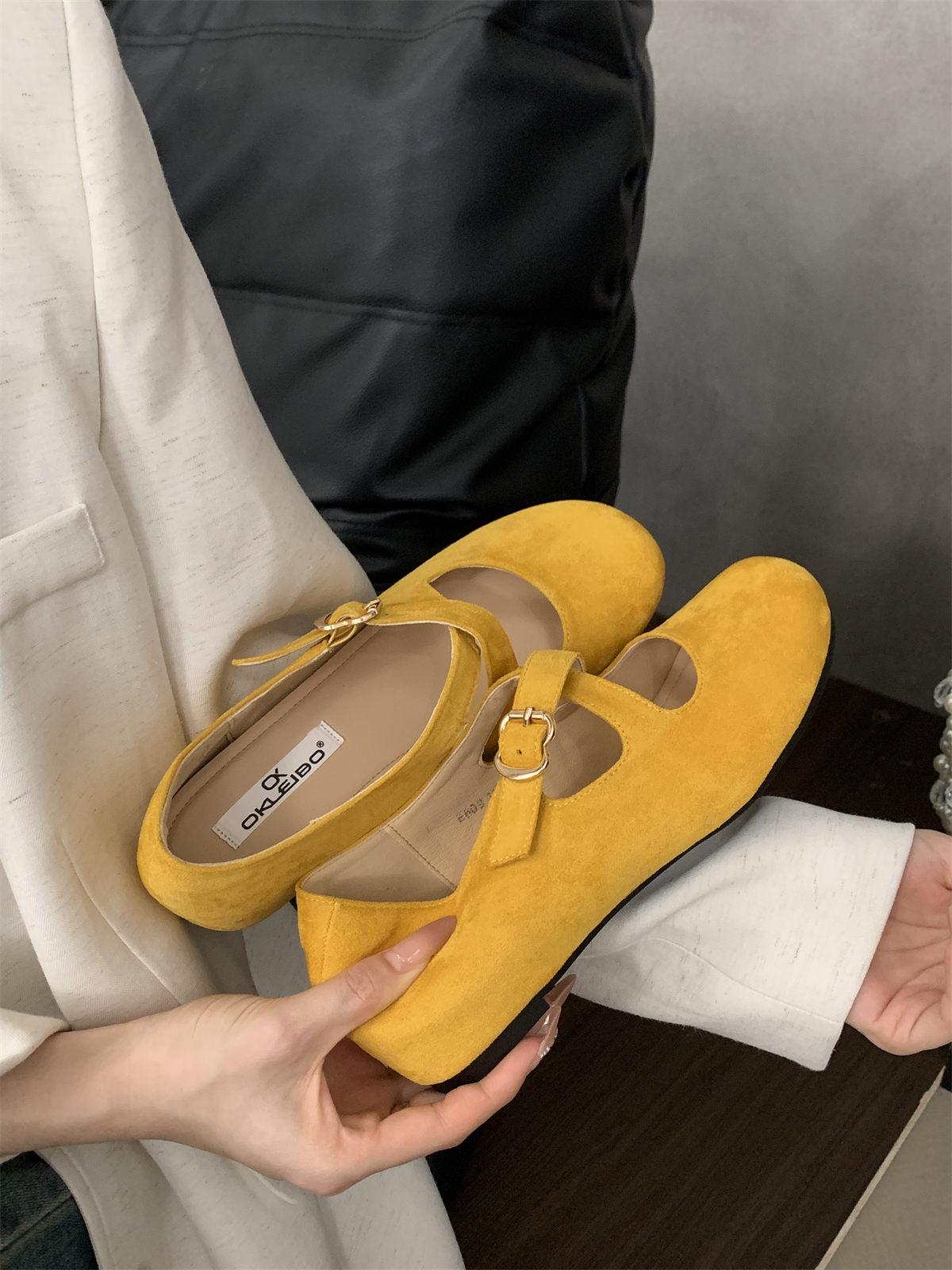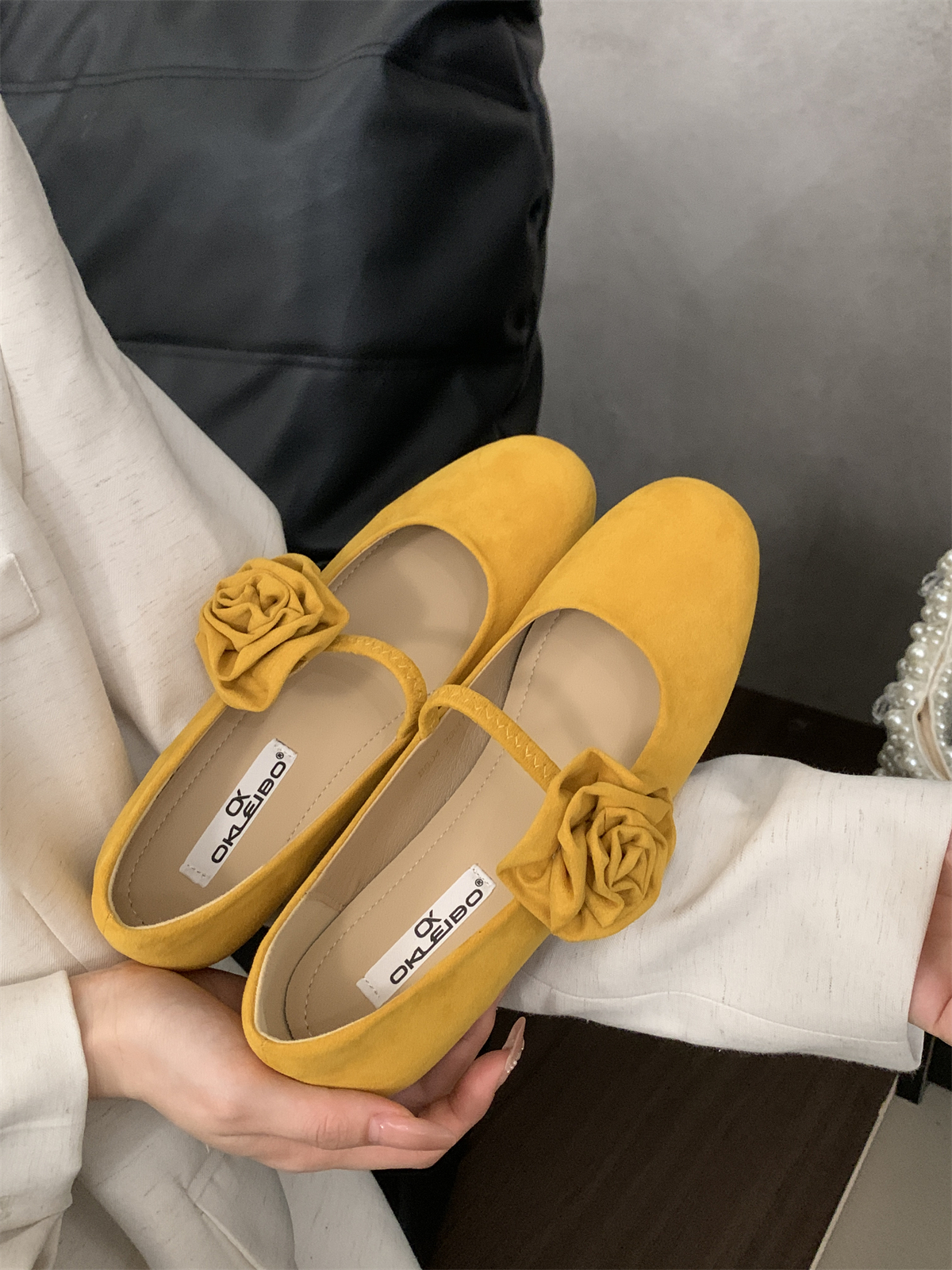 프랑스 스타일 레트로 발레 신발 여성 2025 봄 새로운 도착 활 요정 부드러운 노란색 메리 제인 신발스토어 가기