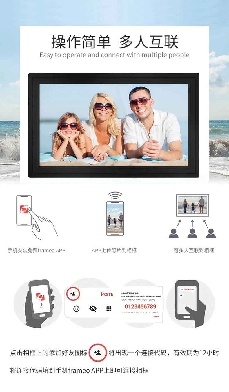 디지털 액자 10.1inch 터치스크린 모바일 앱 비디오 전송 및 사진 재생 32gWIFI 연결