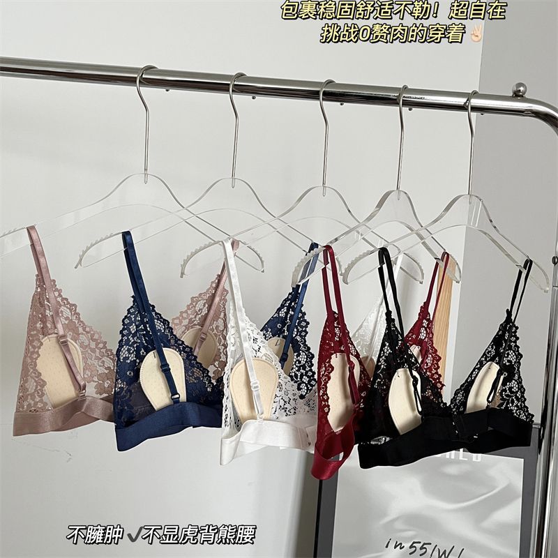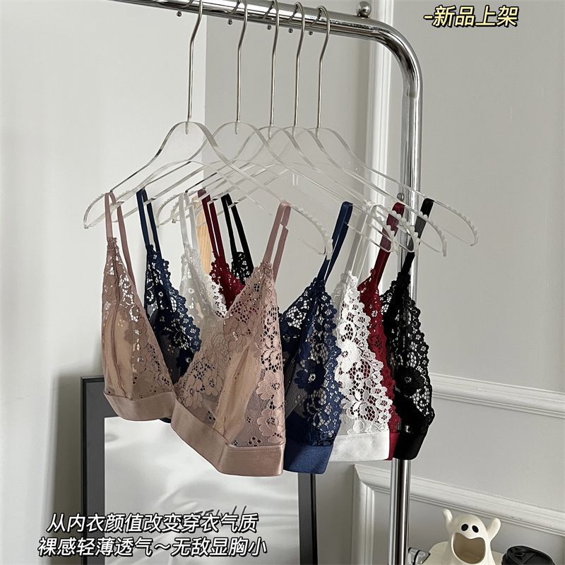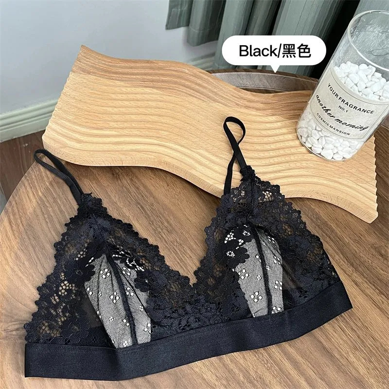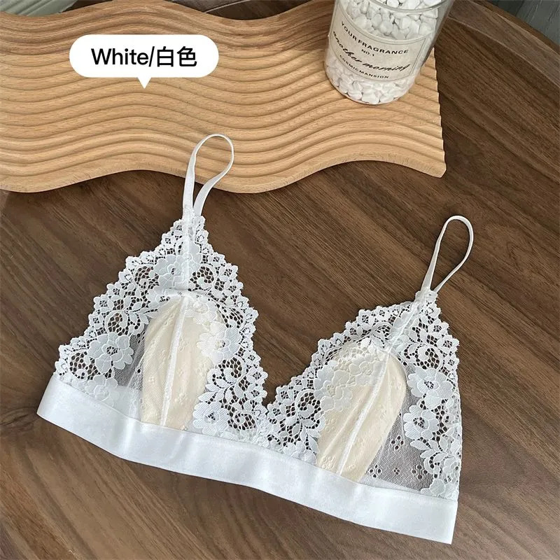 여성용 프렌치 레이스 속옷, 얇고 와이어가 없으며 고정된 토끼 컵, 순수한 정욕 스타일의 소녀가 가슴을 감싸 여름에 돌출 방지