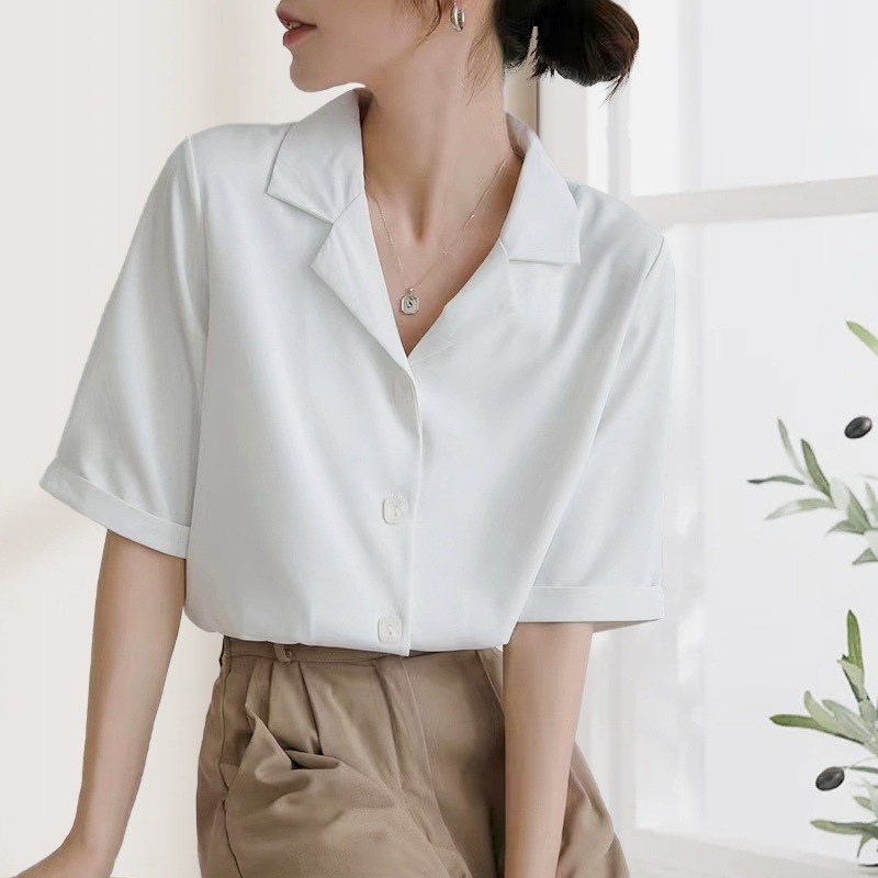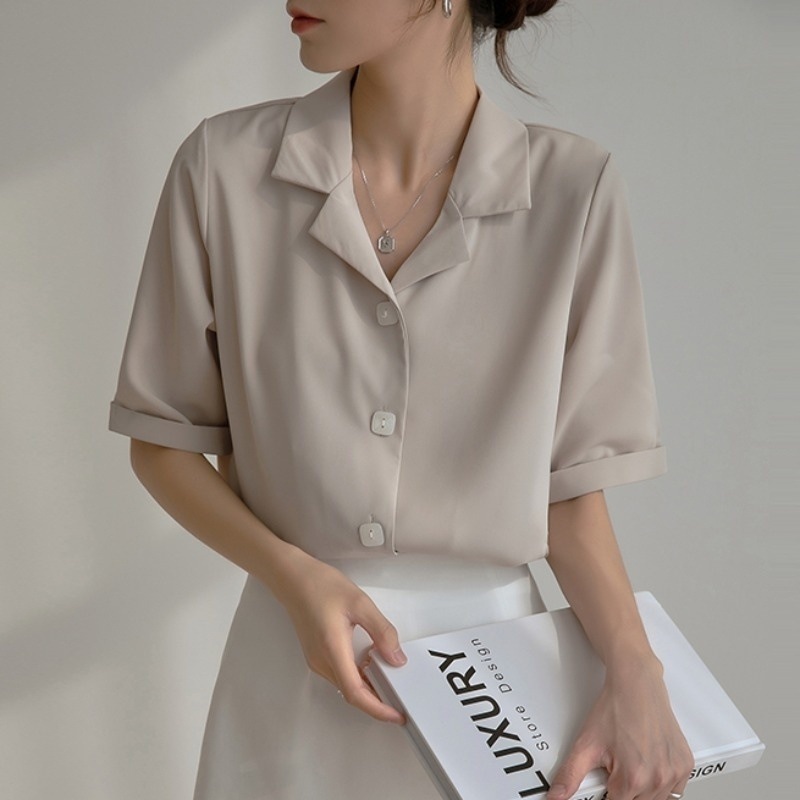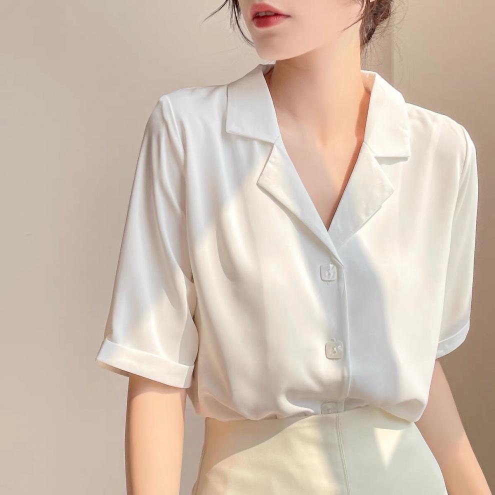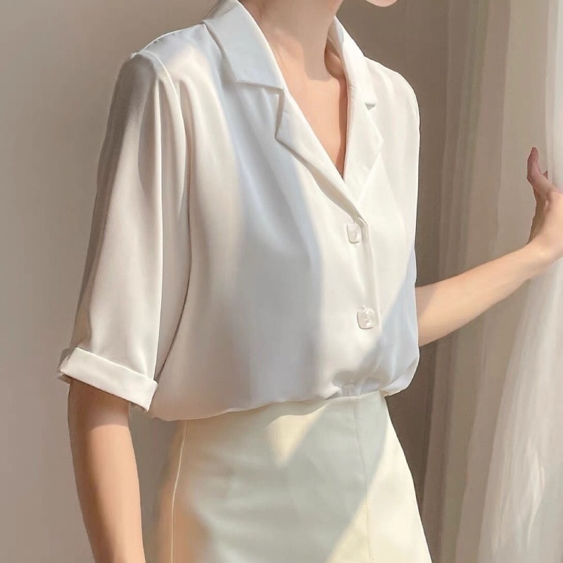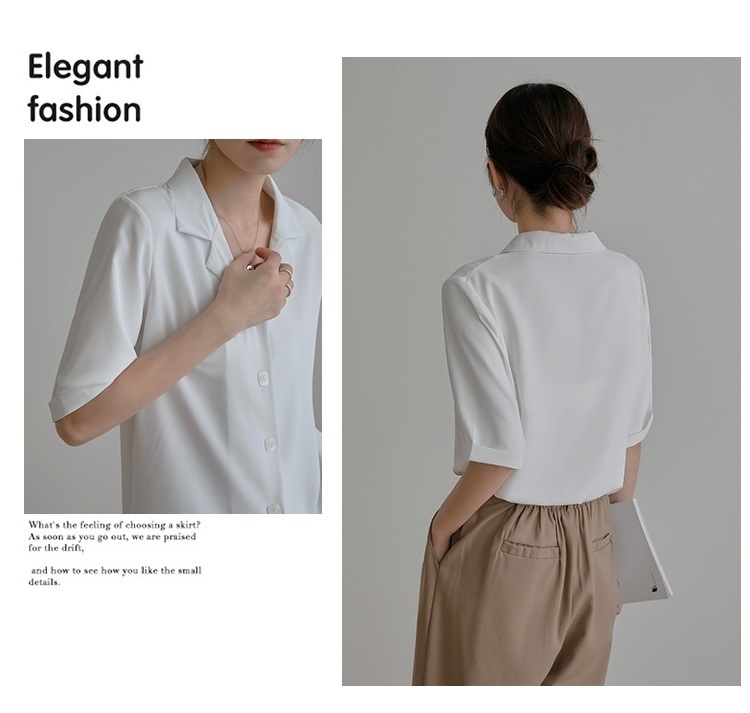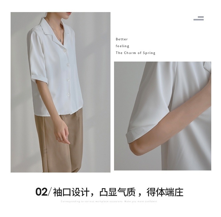 쉬폰 전문 세트 반팔 V 넥 인터뷰 셔츠 여성 여름 새로운 매일 간단한 통근 틈새 디자인스토어 가기