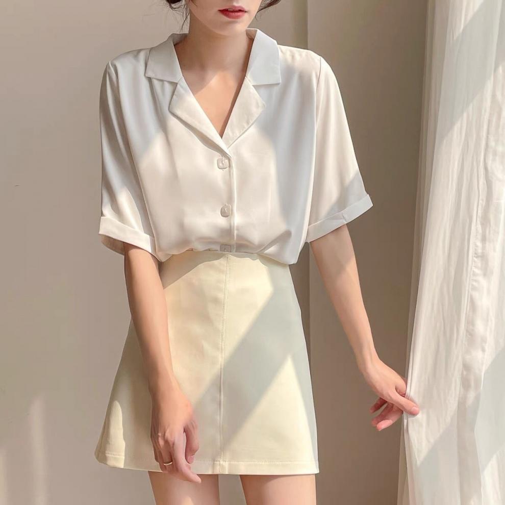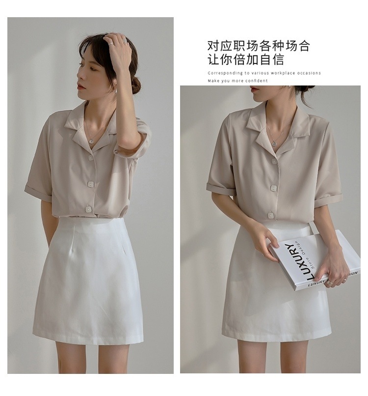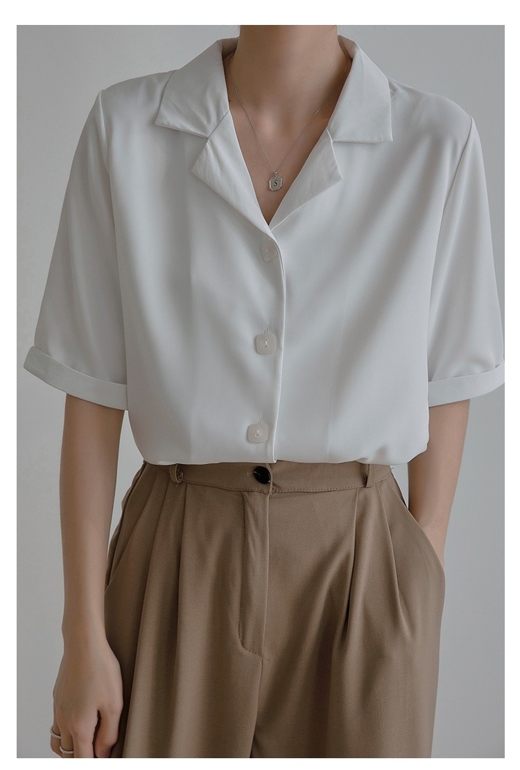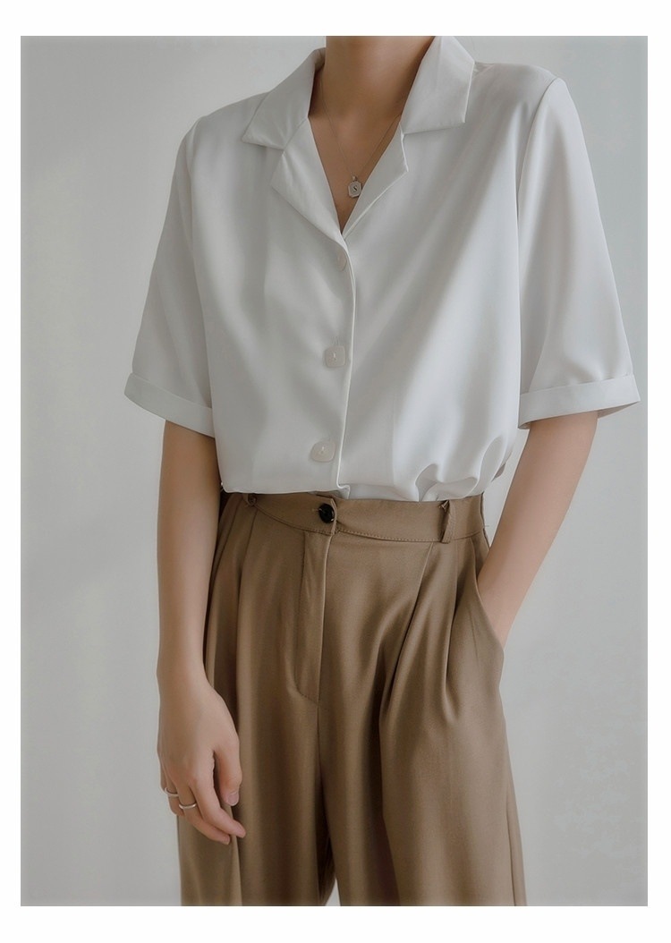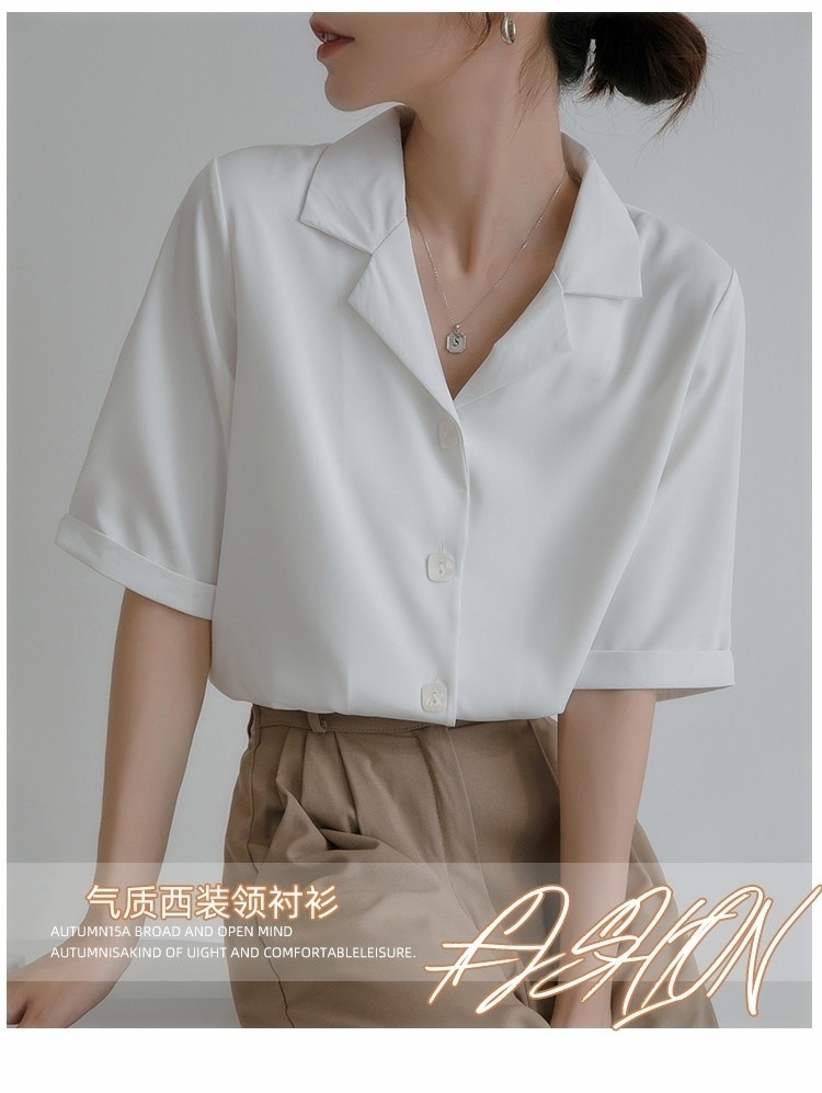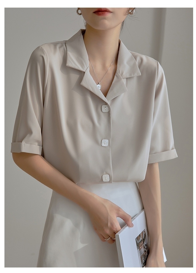 쉬폰 전문 세트 반팔 V 넥 인터뷰 셔츠 여성 여름 새로운 매일 간단한 통근 틈새 디자인스토어 가기