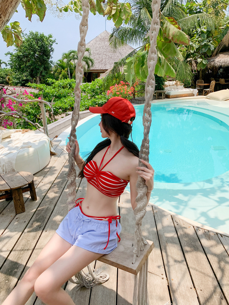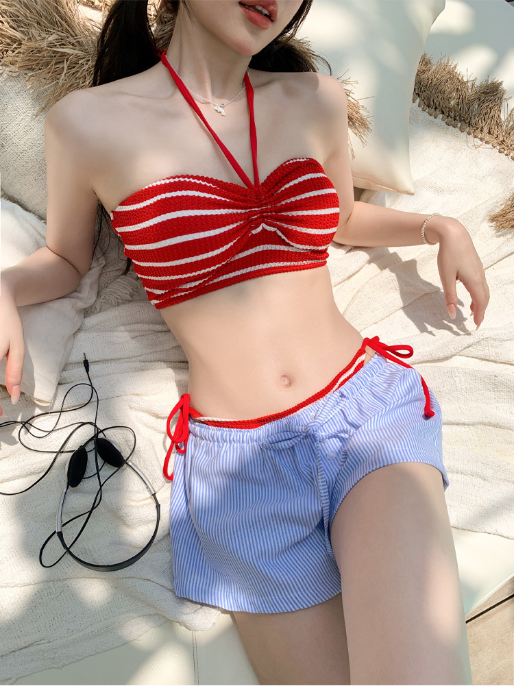 • 빨간색 줄무늬 [튜브탑과 파란색 반바지]