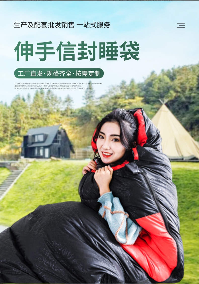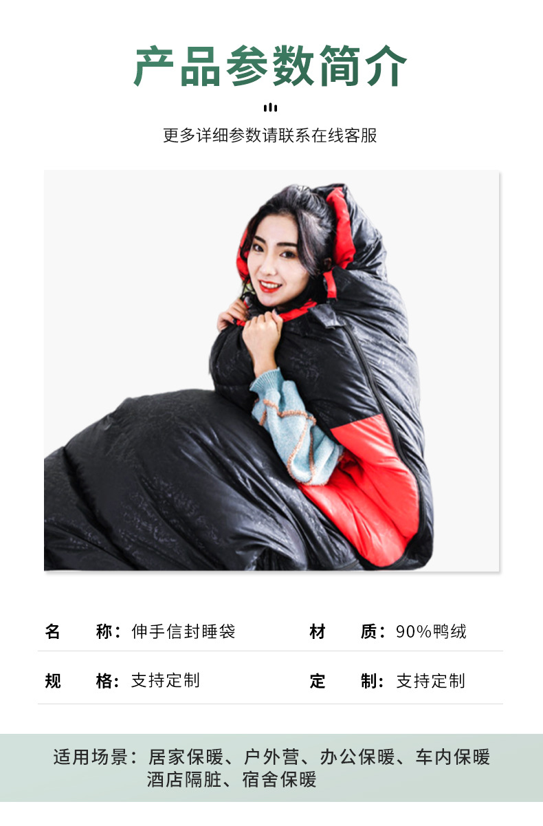 손으로 닿을 수 있는 오리털 침낭, 야외 성인용 사계절 이불, 겸용 캠핑, 가벼운 여름 캠핑스토어 가기