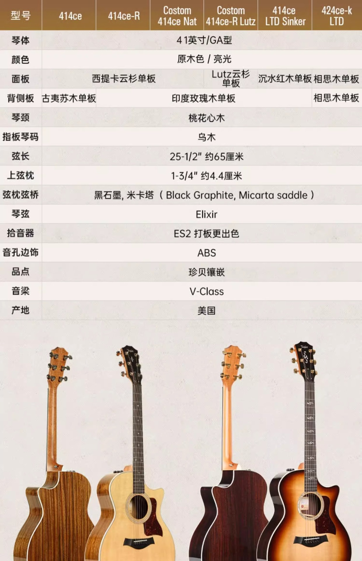 테일러 314CE 414CER 424 미국산 풀 베니어 포크 어쿠스틱 기타 Taylor