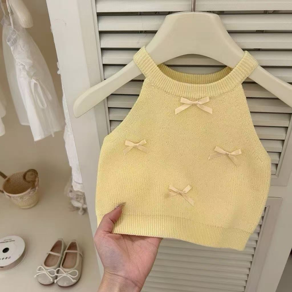 여자 아기 2025 여름 세트 새로운 메쉬 귀여운 아기 소녀 세련된 니트 조끼 패션 투투 스커트