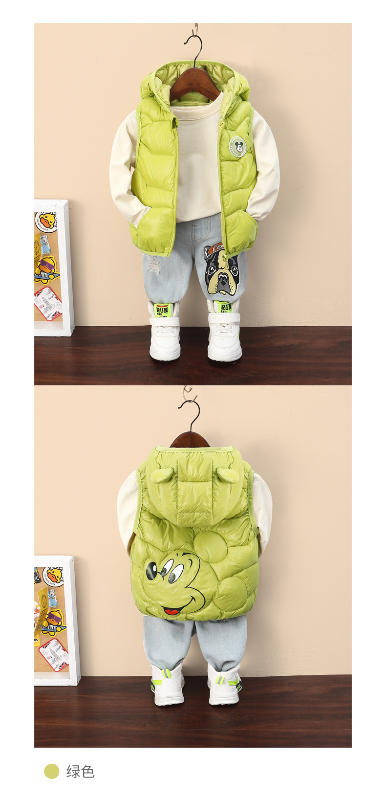 대외 무역 아동 의류 소년과 소녀를위한 새로운 다운 코튼 후드 조끼 따뜻한 조끼 아기 봄, 가을 코트스토어 가기