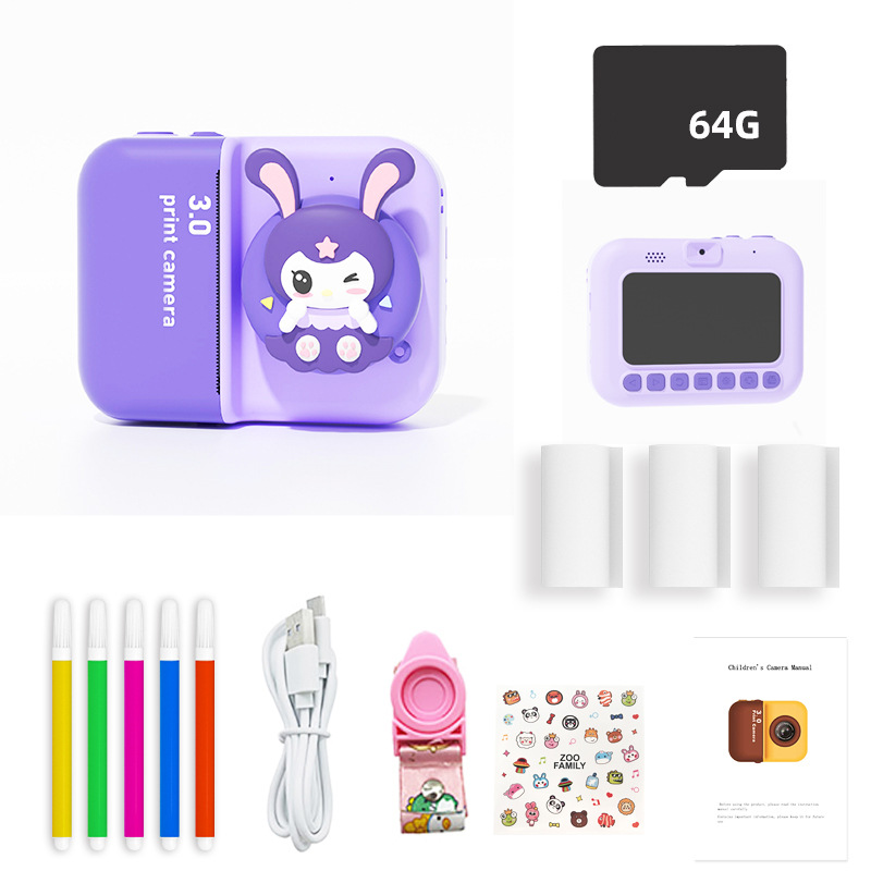 • D3 보라색 귀여운 토끼 폴라로이드(64g 메모리 카드)