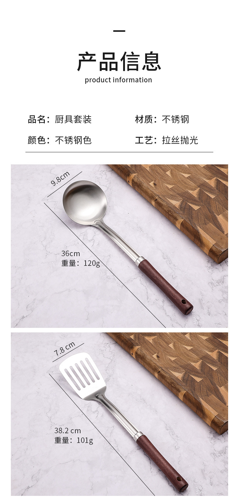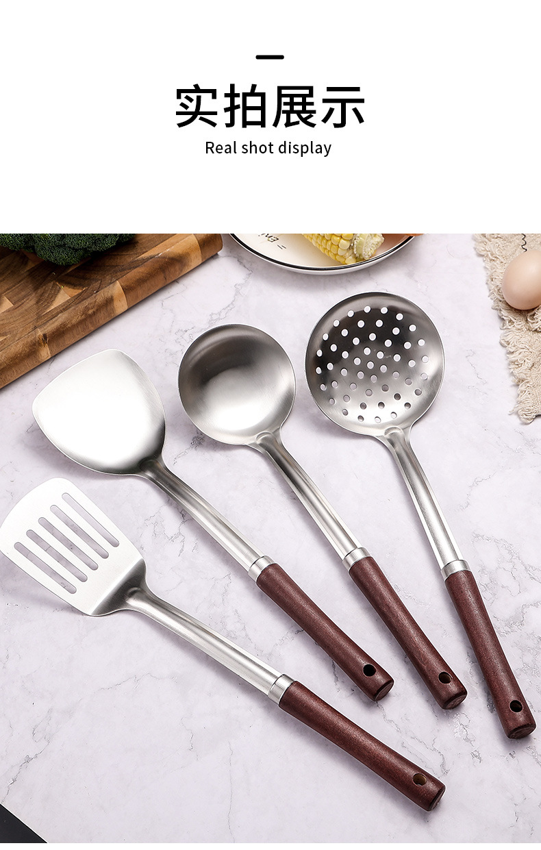 201 스테인레스 스틸 주걱 세트 가정용 주방 비 자기 요리 주방 볶음 삽 수프 숟가락 소쿠리 4 종 세트