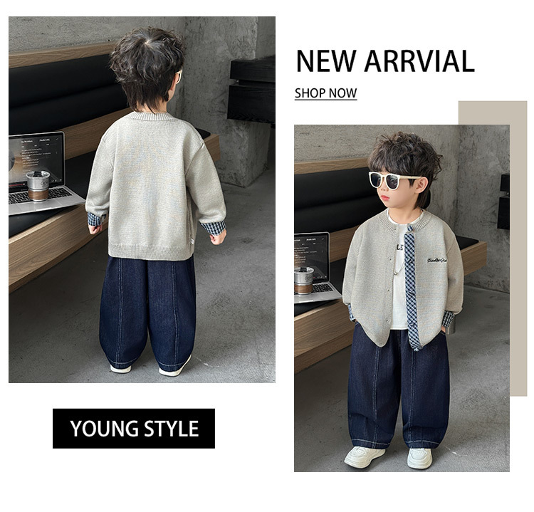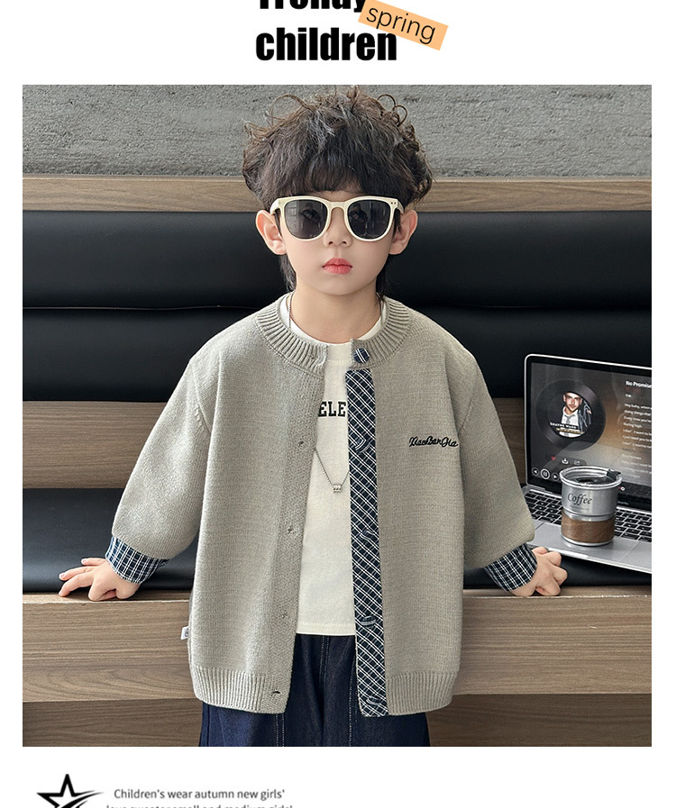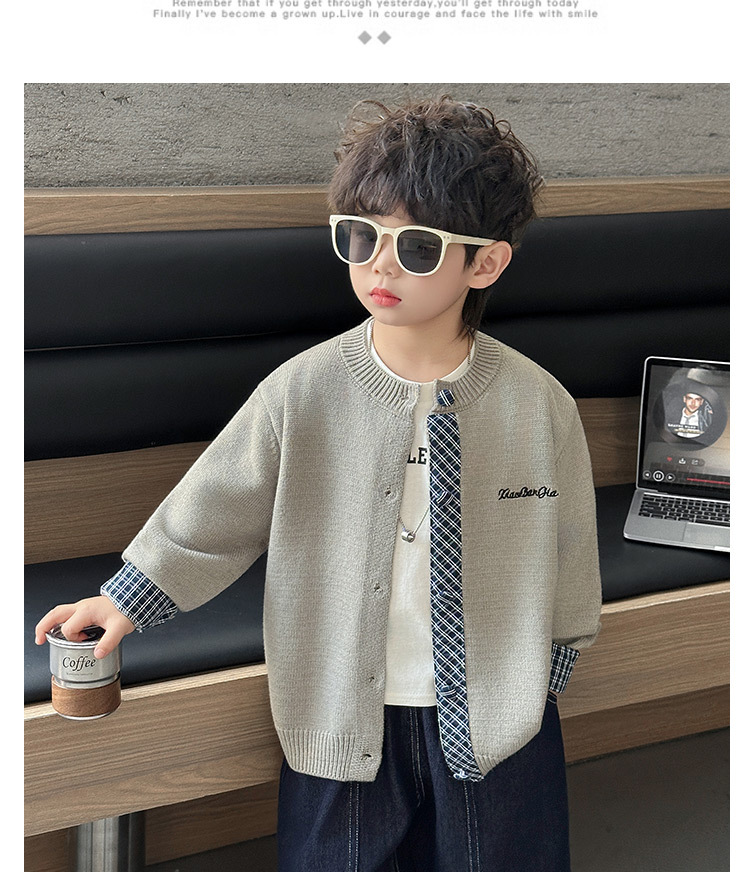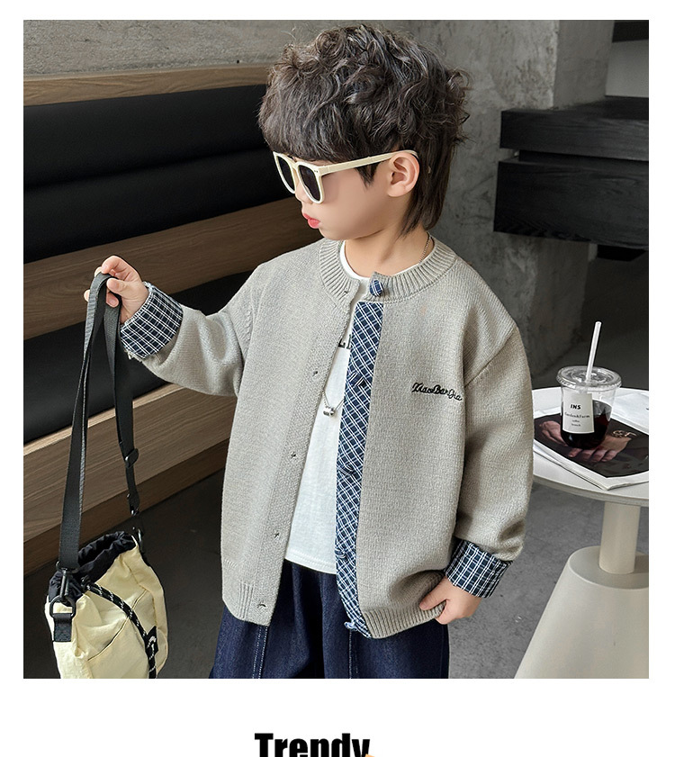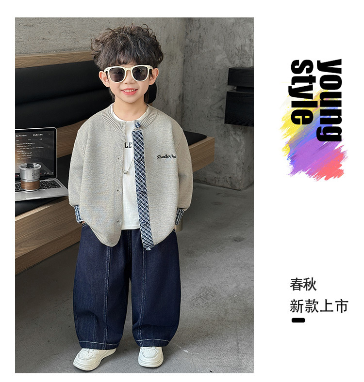 남아용 스웨터 가디건 코트 봄 가을용 한국 스타일 신상 유행 아기 가을 아동 니트 스웨터 배색 상의스토어 가기