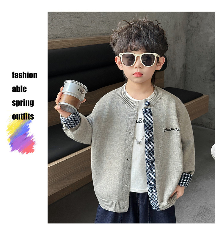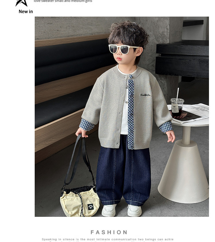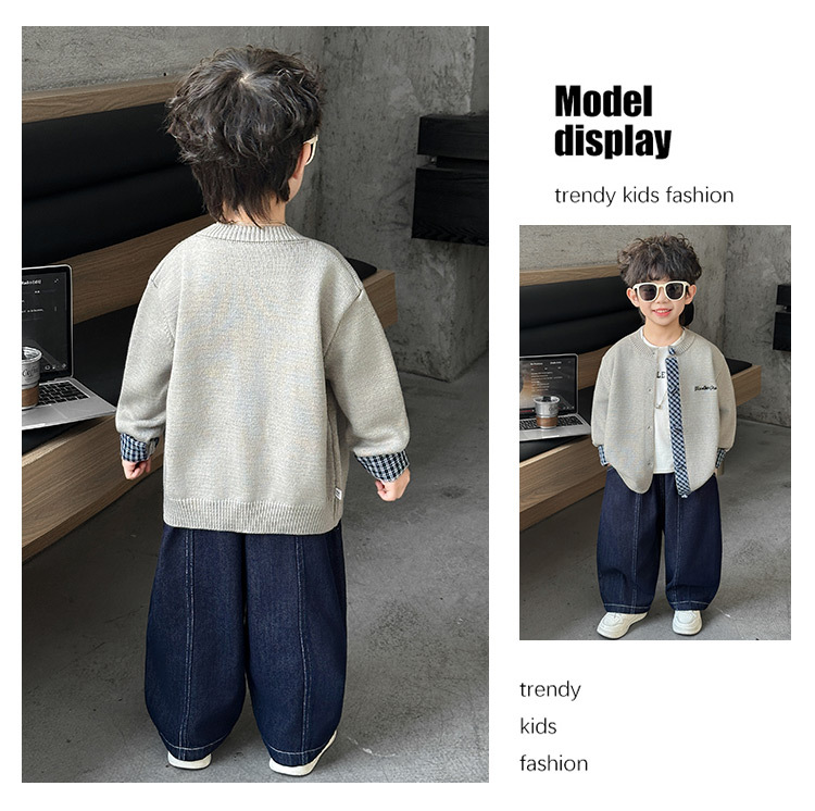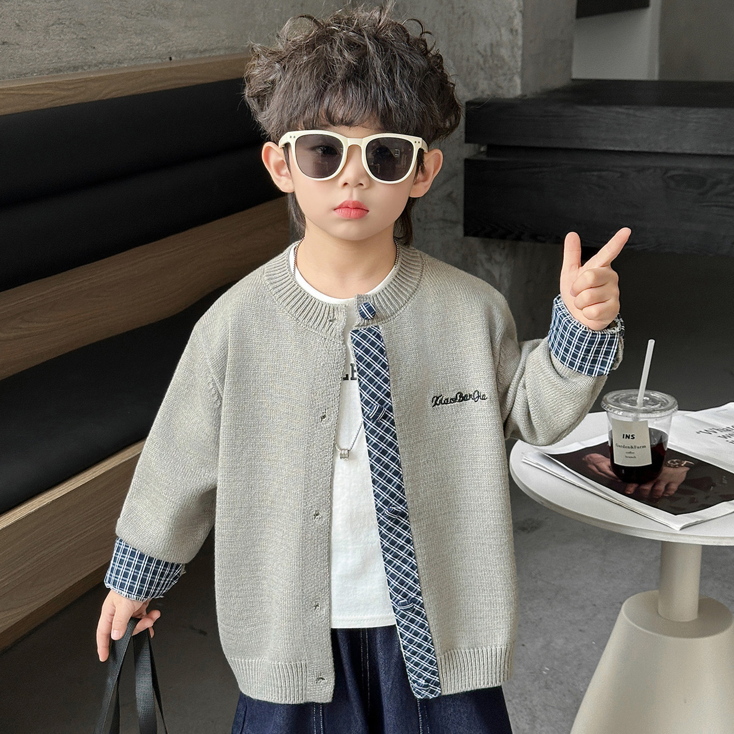 남아용 스웨터 가디건 코트 봄 가을용 한국 스타일 신상 유행 아기 가을 아동 니트 스웨터 배색 상의