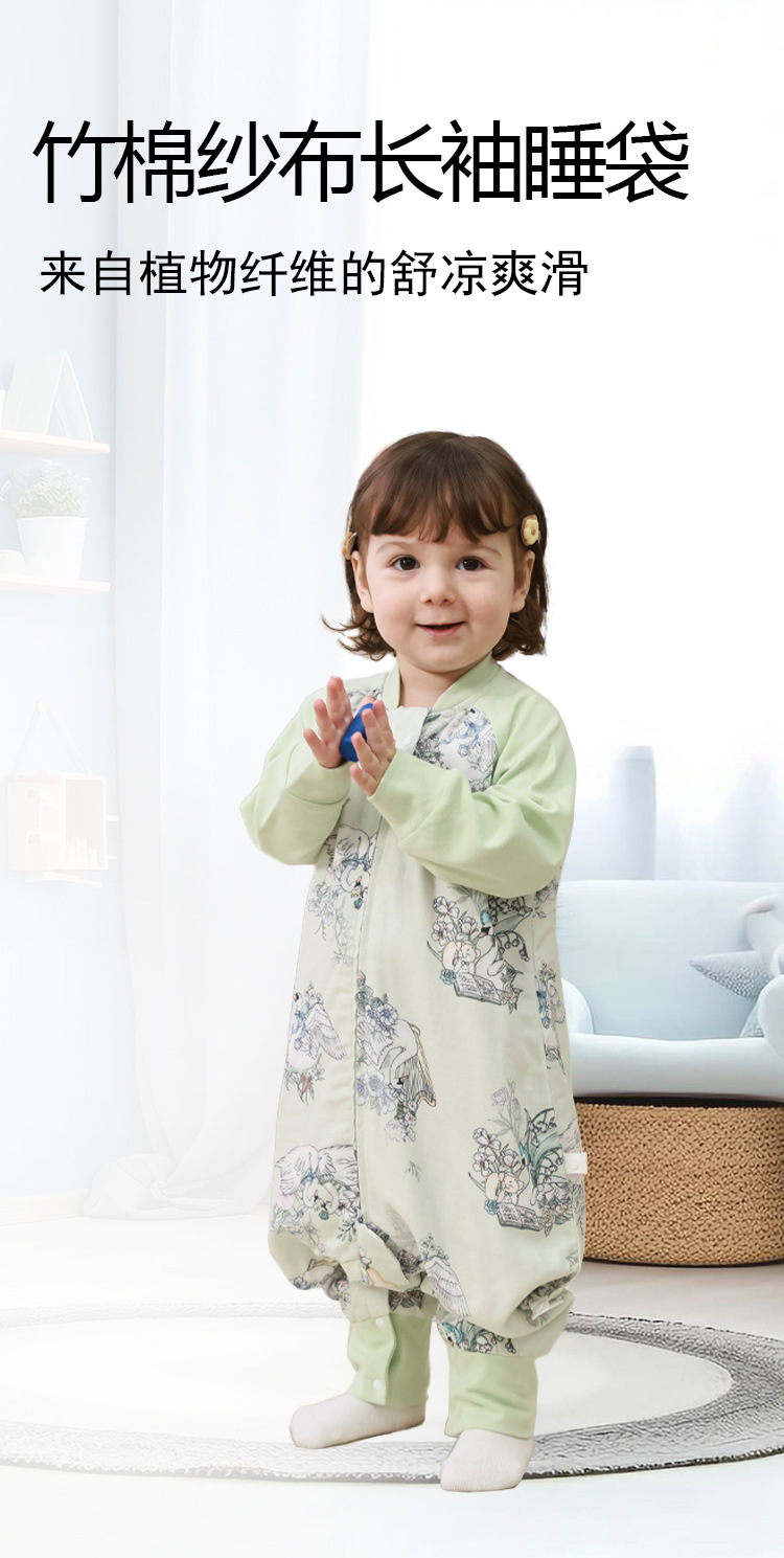 아기 침낭 4 층 봄, 가을 대나무 면화 거즈 아기 다리 침낭 어린이 안티 킥 이불