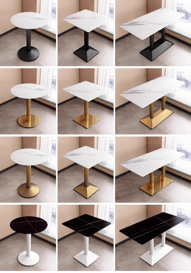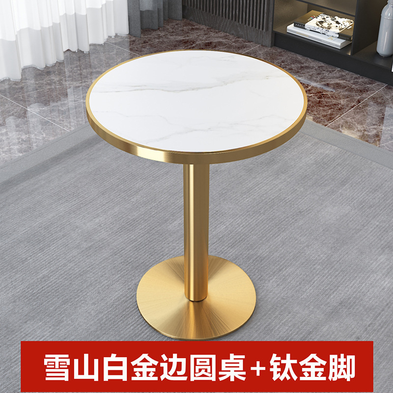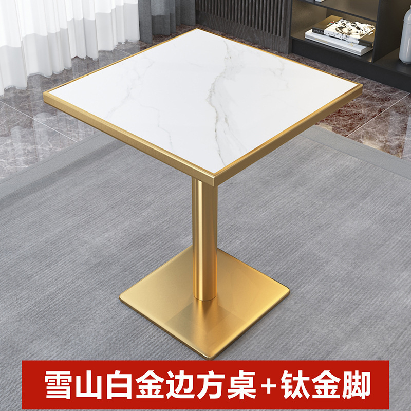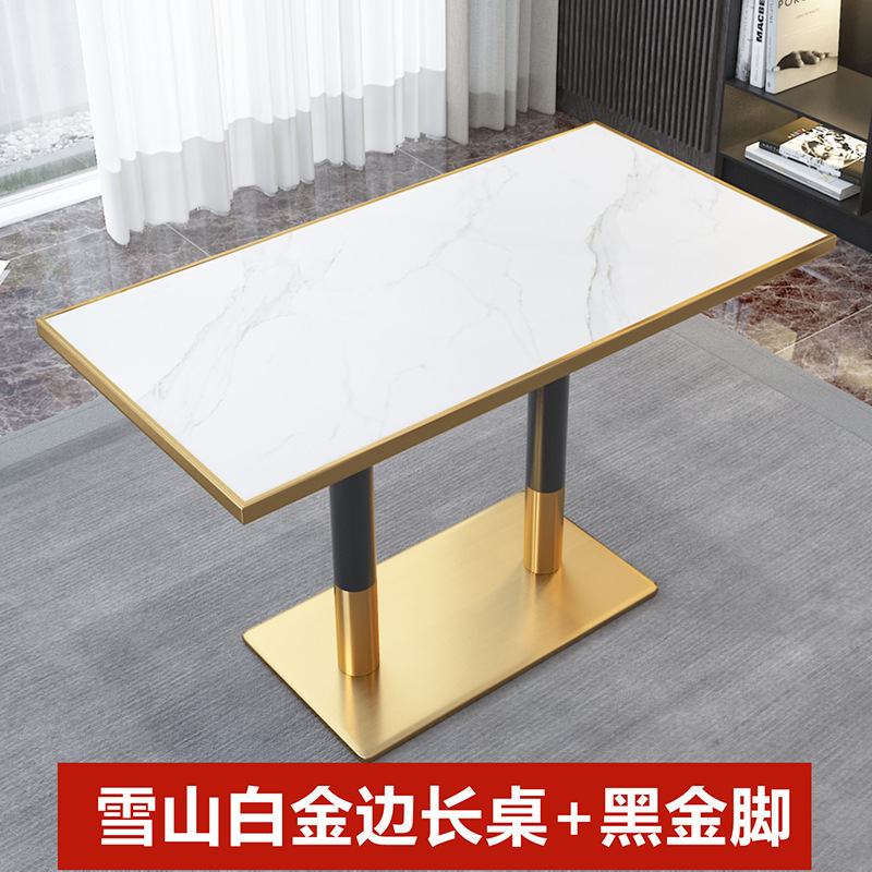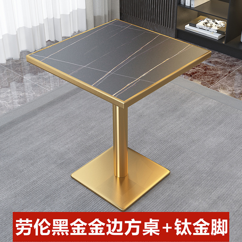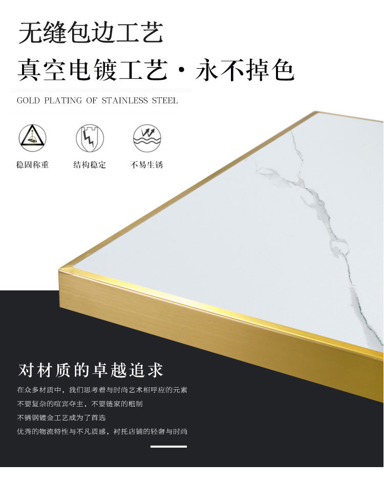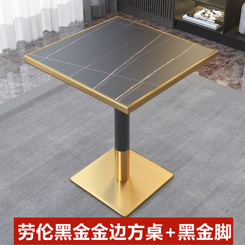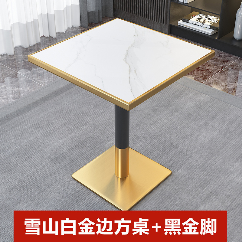 가벼운 고급 서양 레스토랑 대리석 식탁 및 의자 상업용 커피 밀크 티 호텔 스테인레스 스틸 골든 에지 록 플레이트 테이블스토어 가기