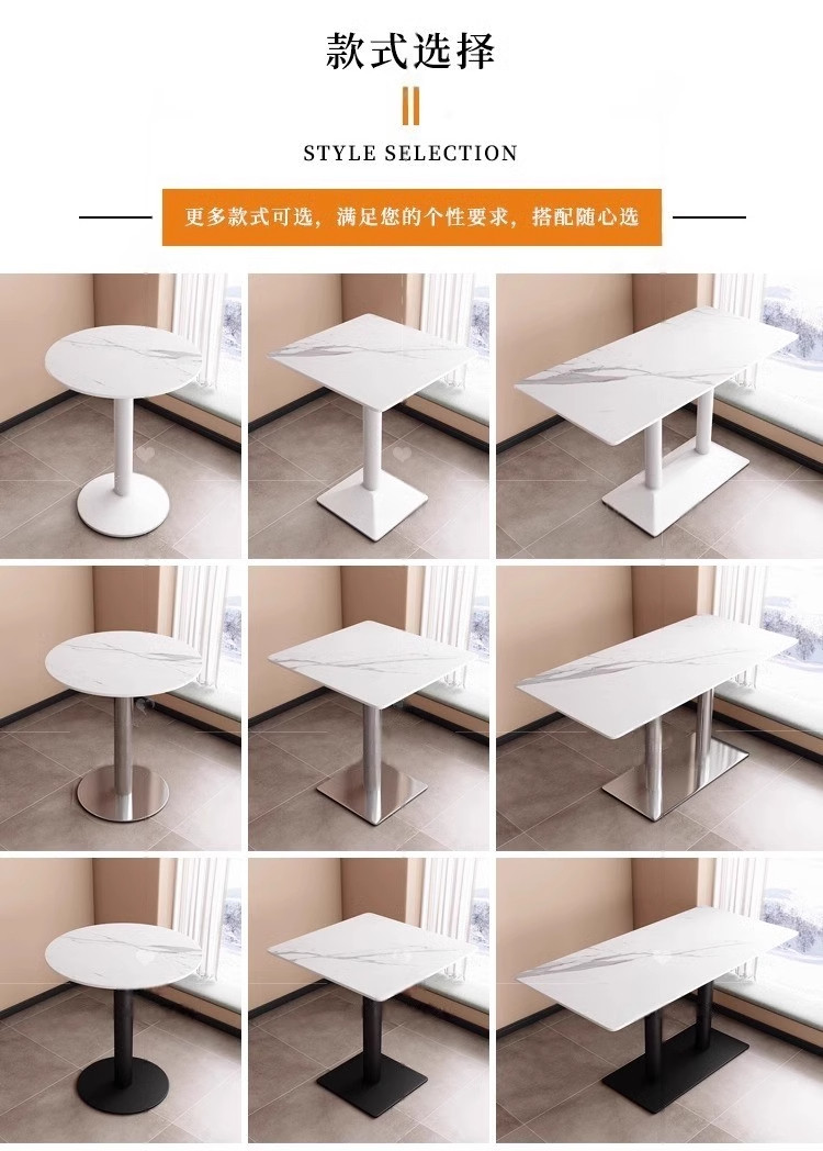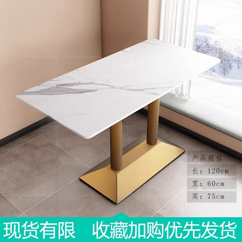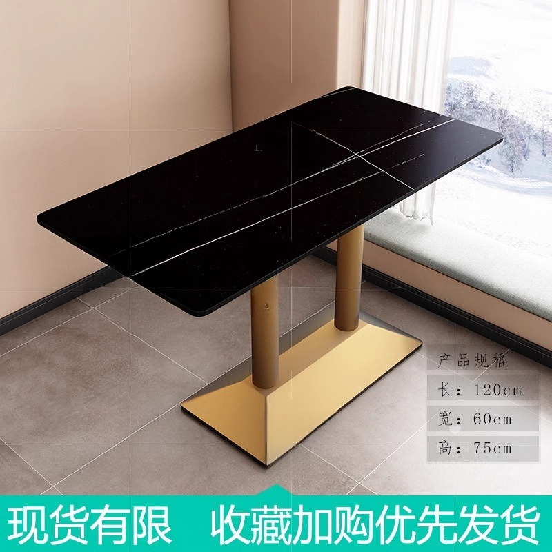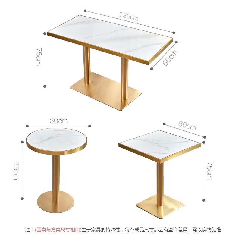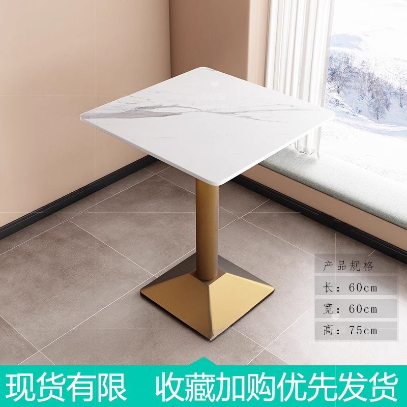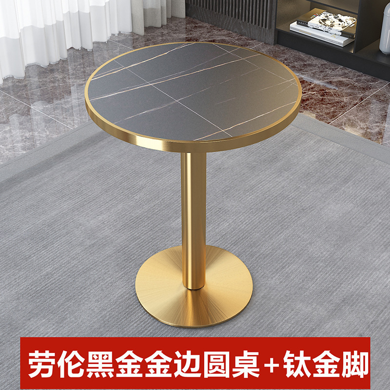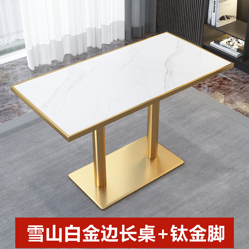 가벼운 고급 서양 레스토랑 대리석 식탁 및 의자 상업용 커피 밀크 티 호텔 스테인레스 스틸 골든 에지 록 플레이트 테이블스토어 가기