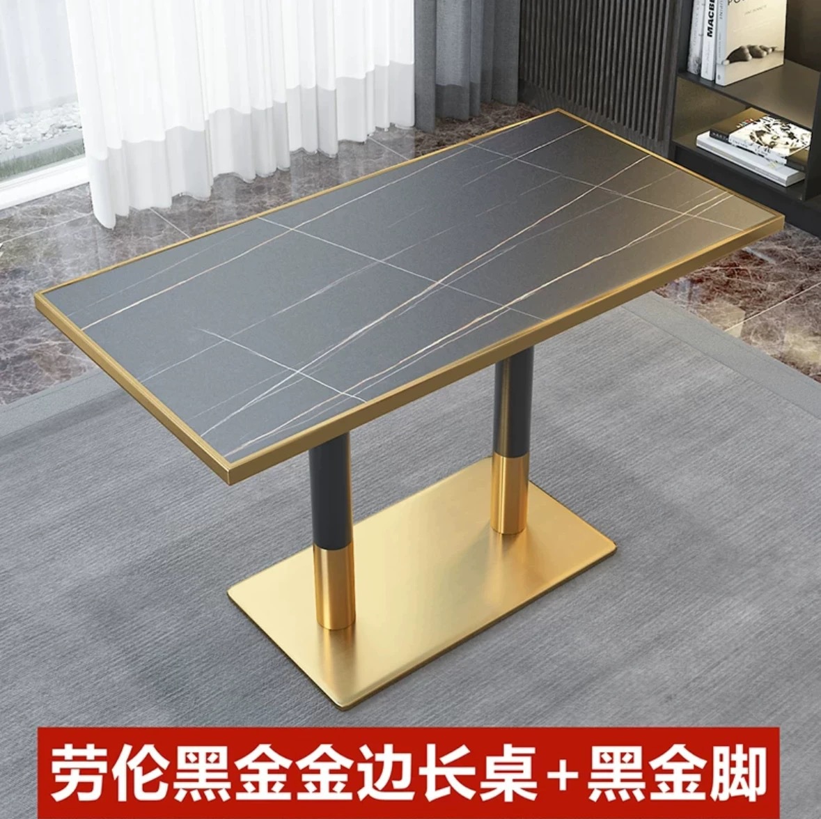 • 설산 백금 가장자리 긴 테이블 120*60+블랙 골드 피트
