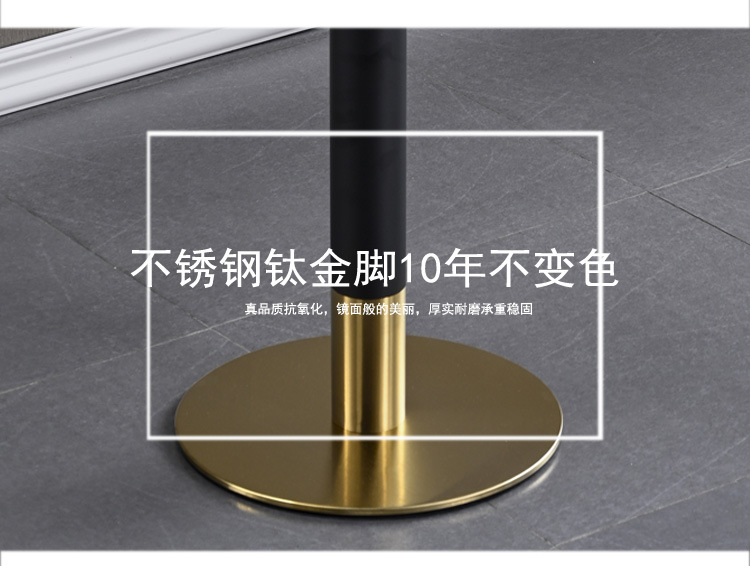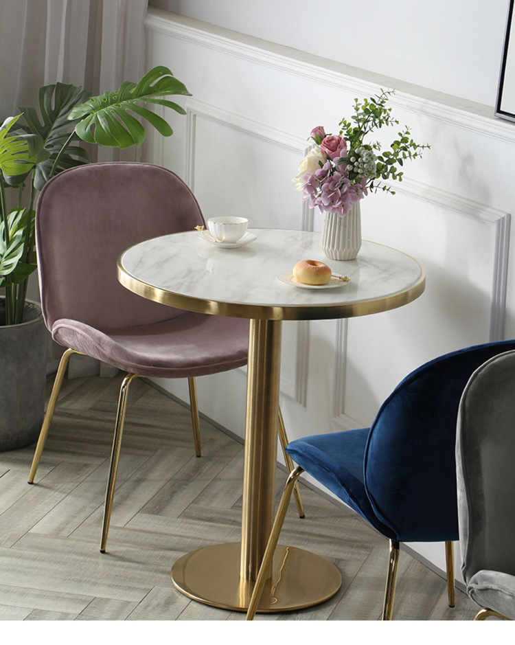 가벼운 고급 서양 레스토랑 대리석 식탁 및 의자 상업용 커피 밀크 티 호텔 스테인레스 스틸 골든 에지 록 플레이트 테이블