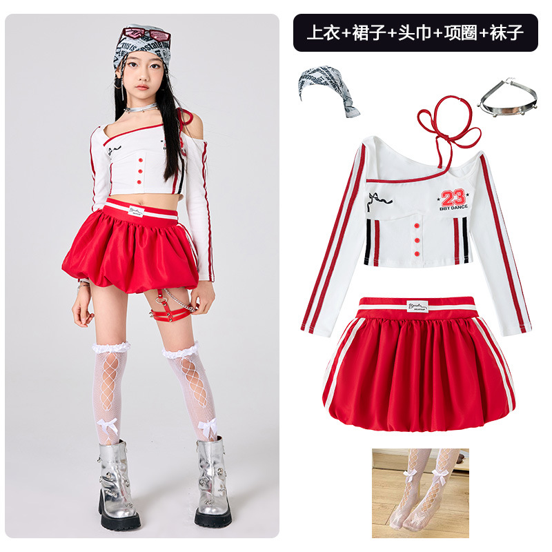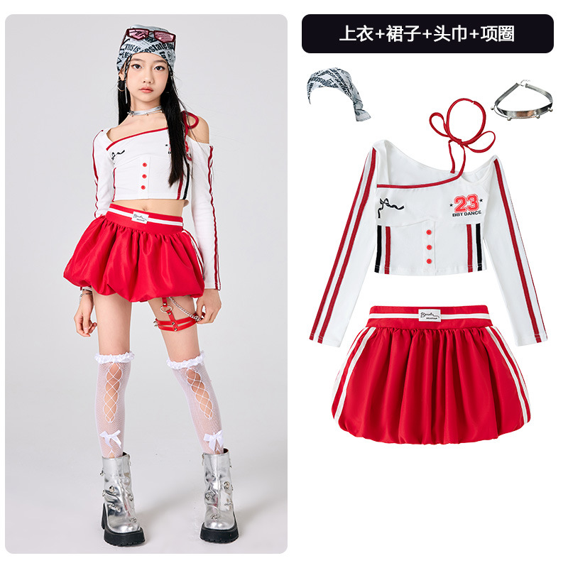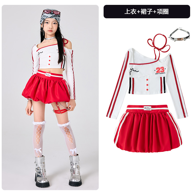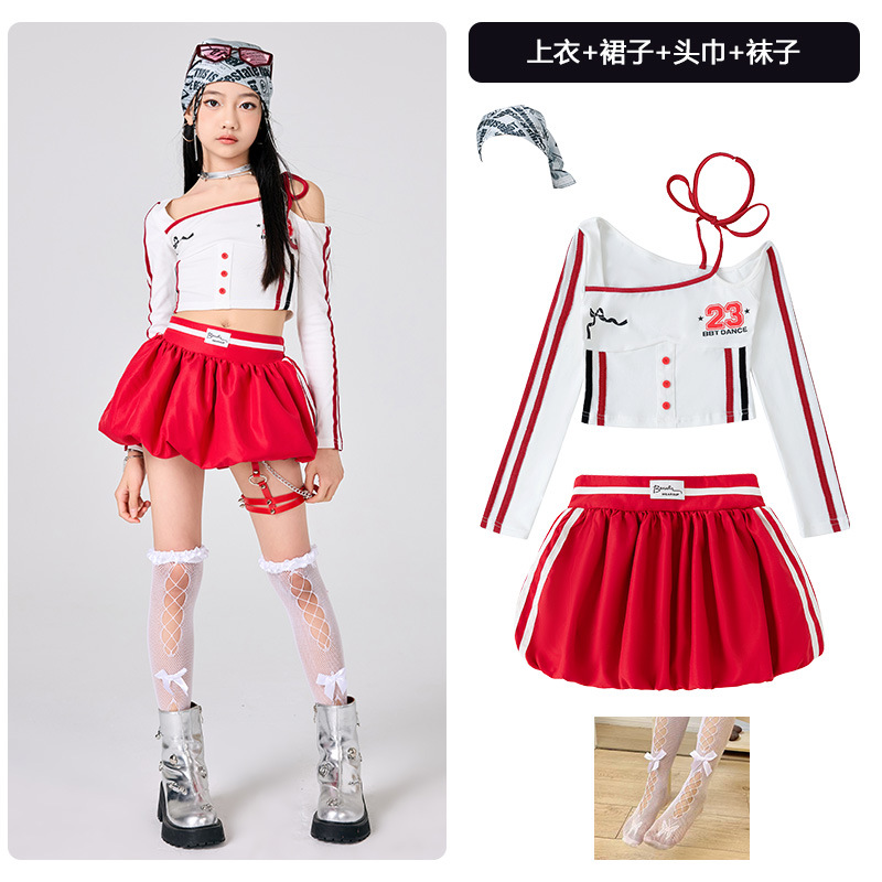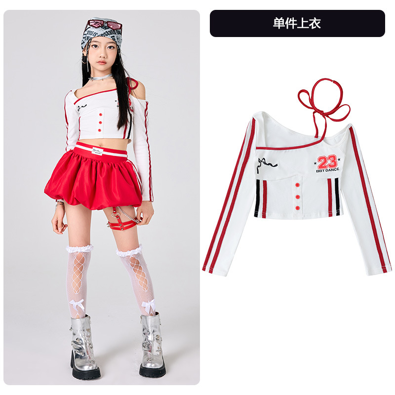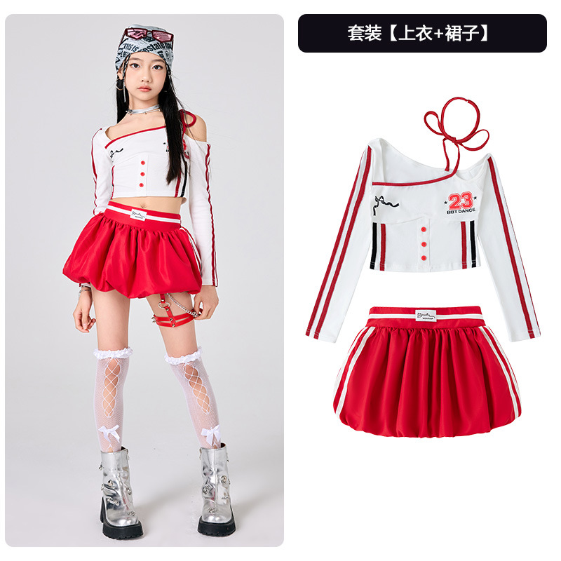 어린이 소녀 재즈 댄스 의상 어린이 스트리트 댄스 패션 의상 공연 의상 초등 학생 레이스 캣워크 공연 의상 세트