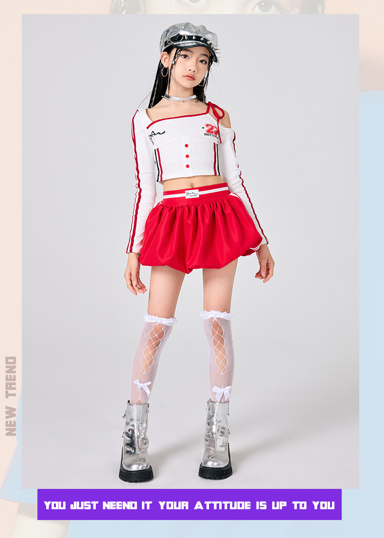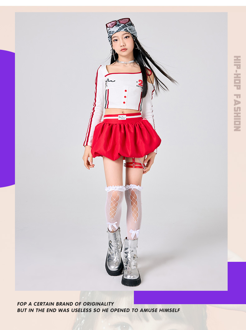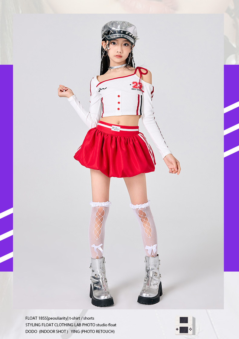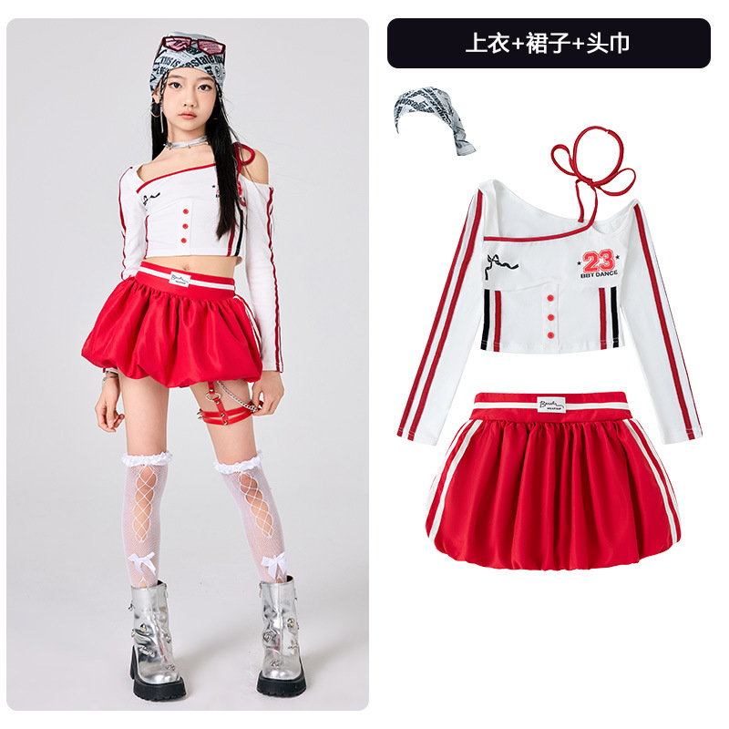 어린이 소녀 재즈 댄스 의상 어린이 스트리트 댄스 패션 의상 공연 의상 초등 학생 레이스 캣워크 공연 의상 세트