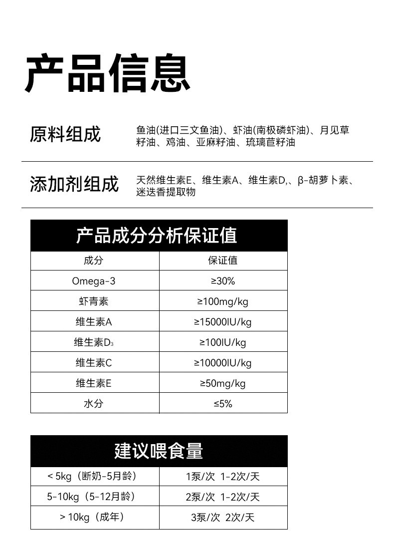 크릴 심해 물고기 기름 오메가 3 고양이 개 머리 방지 애완 동물 특별한 레시틴 머리 250ml