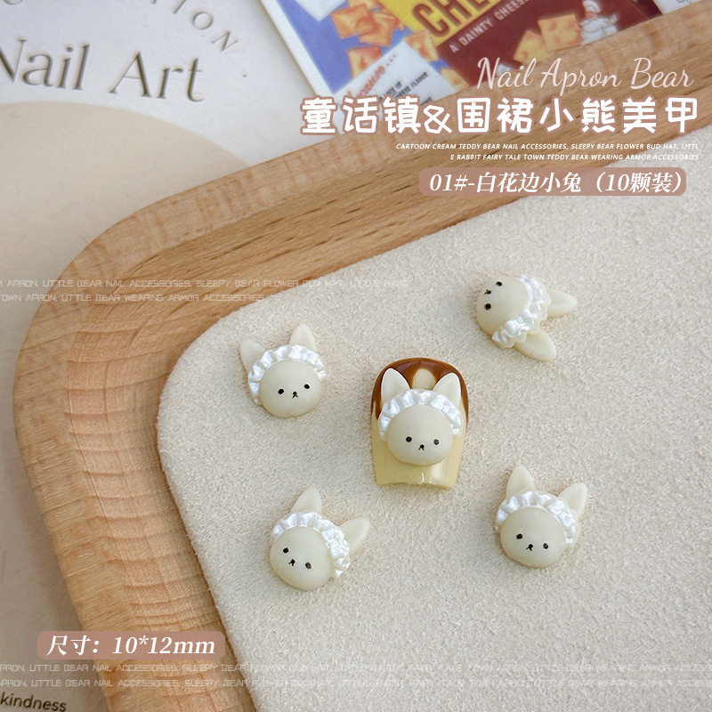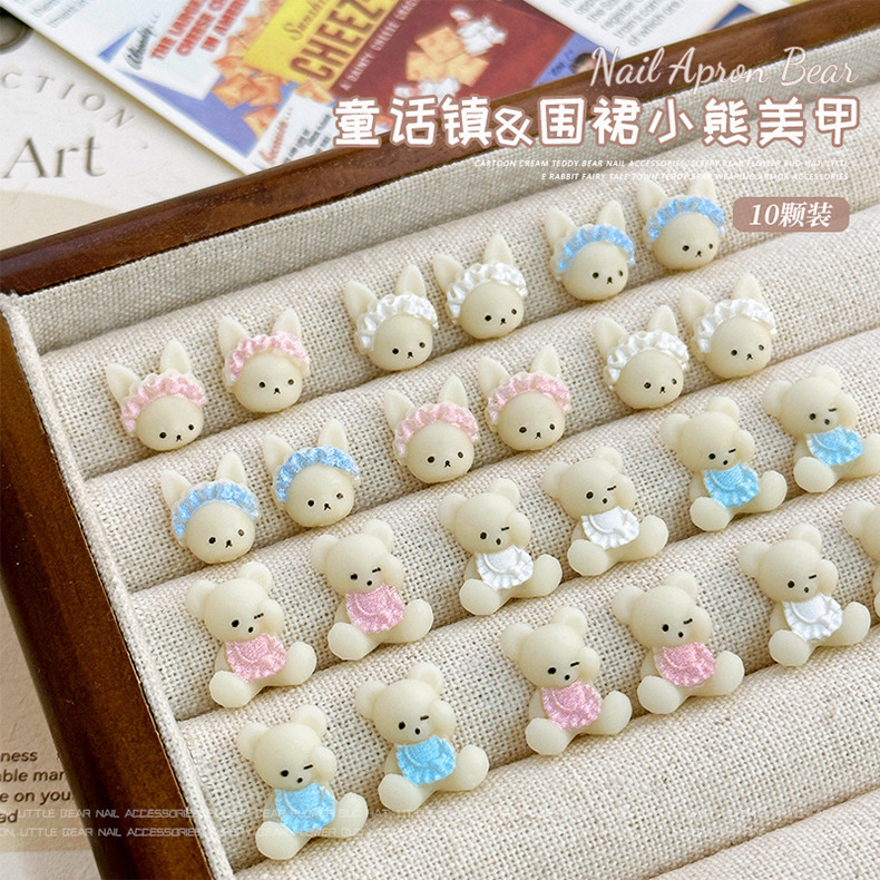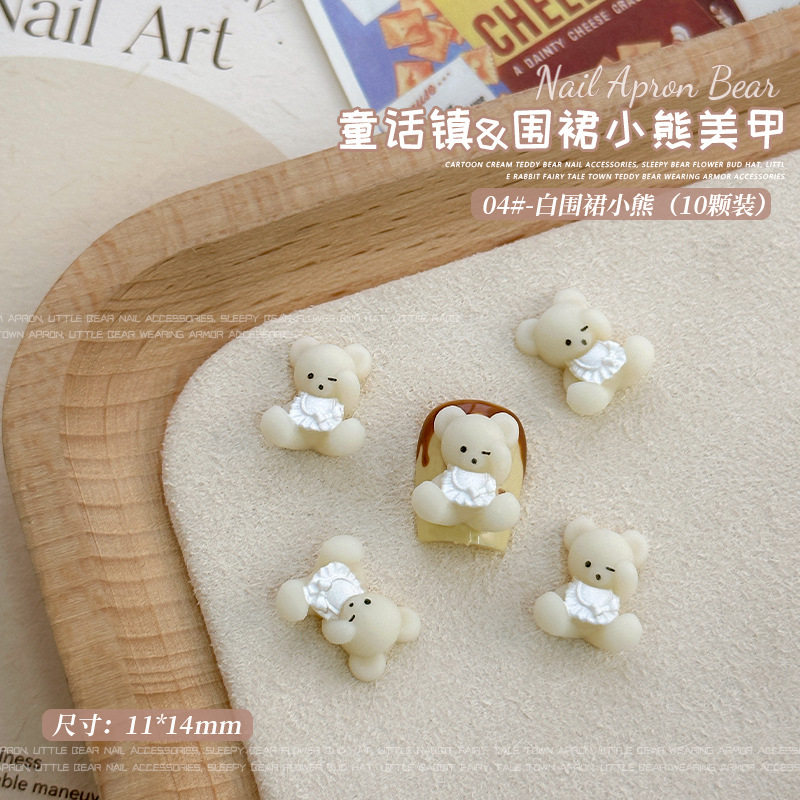 크림 베어 네일 아트 쥬얼리 2025 새로운 귀여운 3 차원 앞치마 곰 만화 네일 레진 드릴 액세서리스토어 가기
