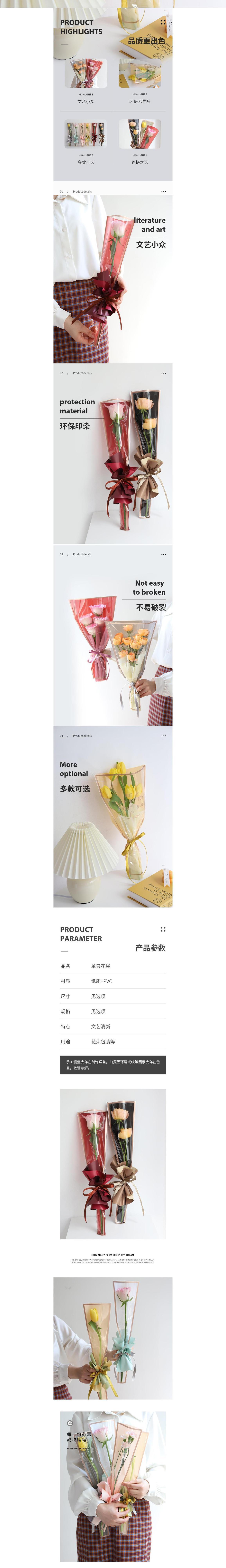꽃 포장 장미 단일 포장 가방 단일 꽃 포장 종이 단일 꽃 작은 꽃다발 포장 재료