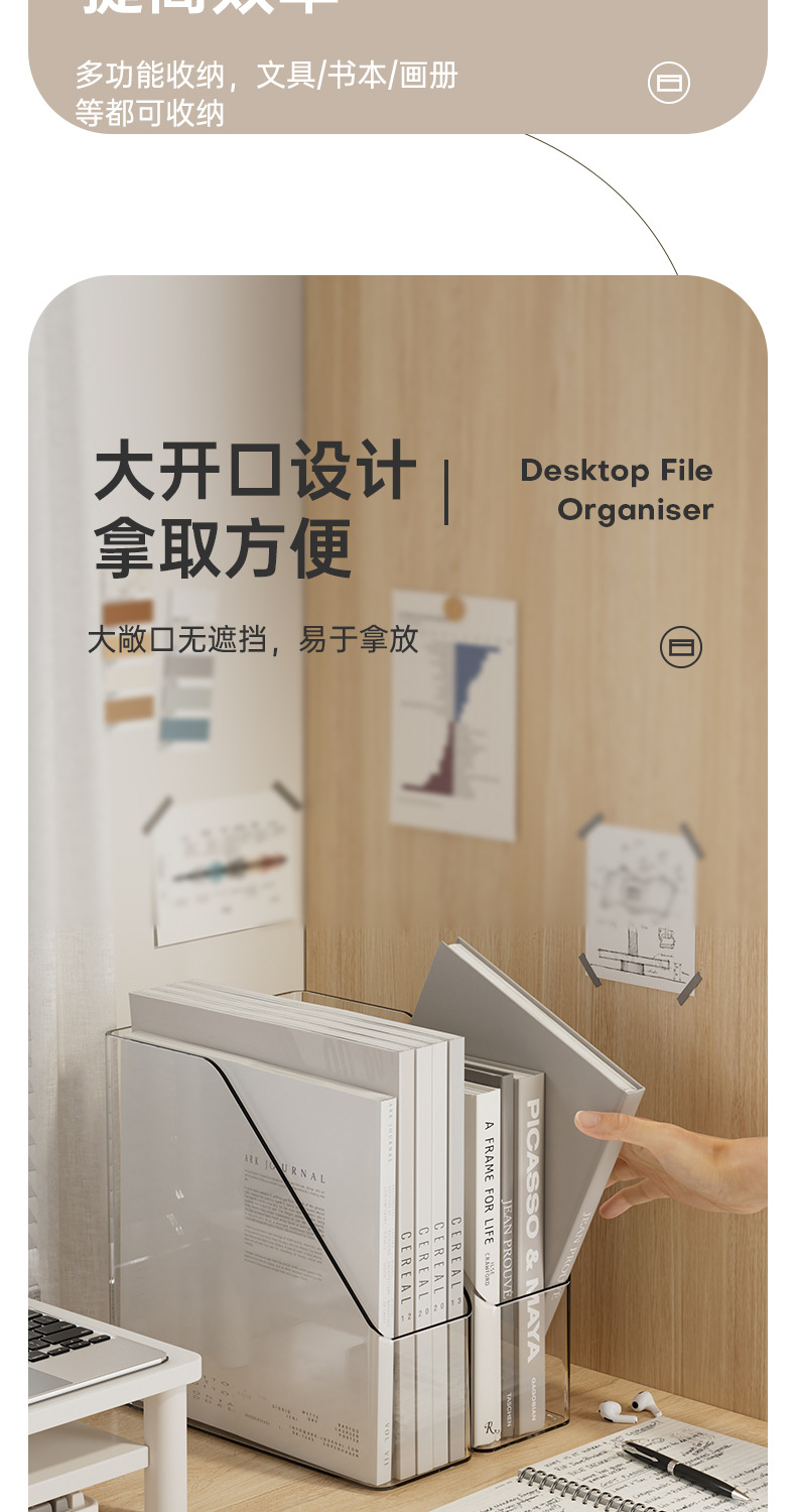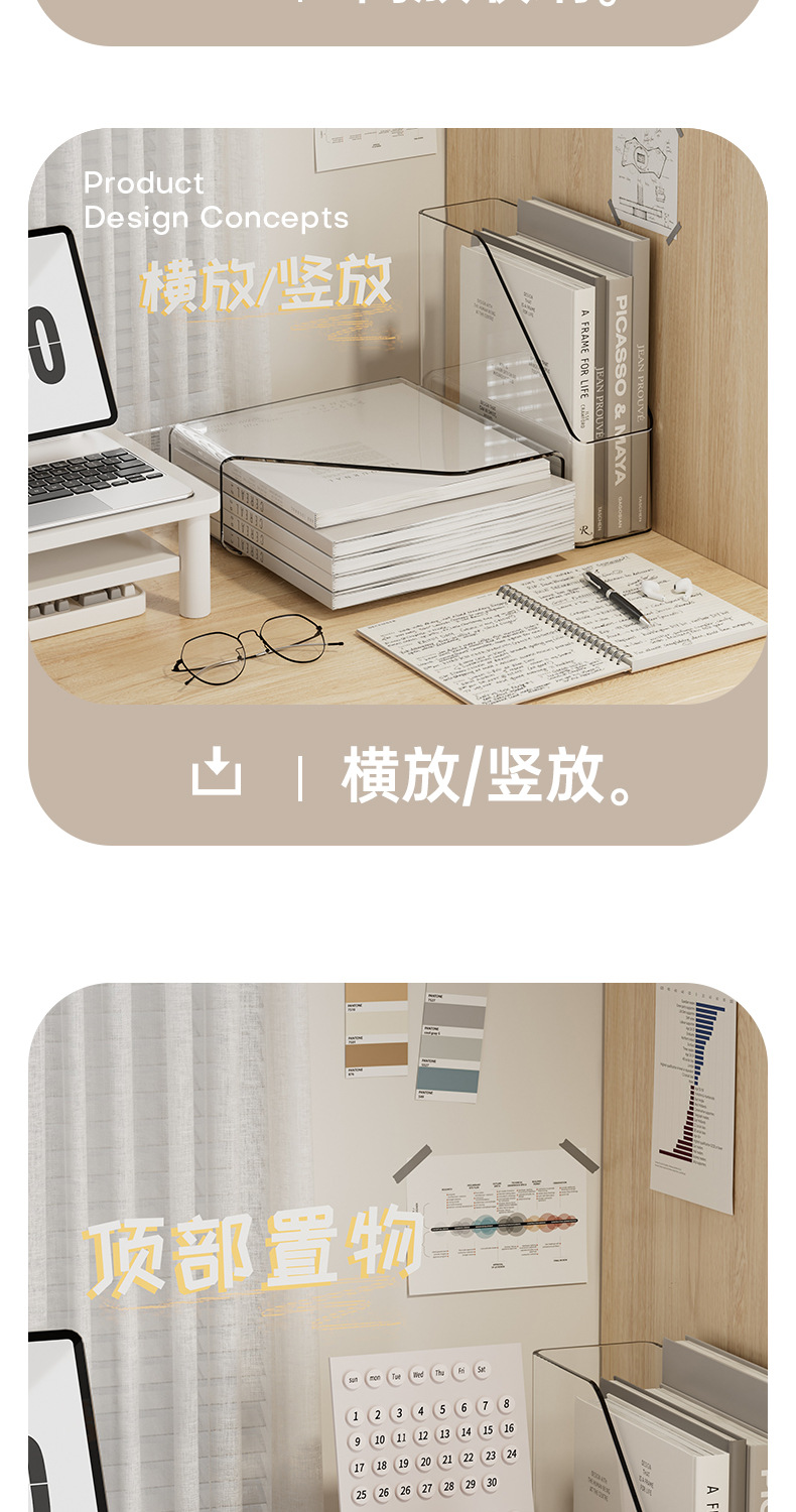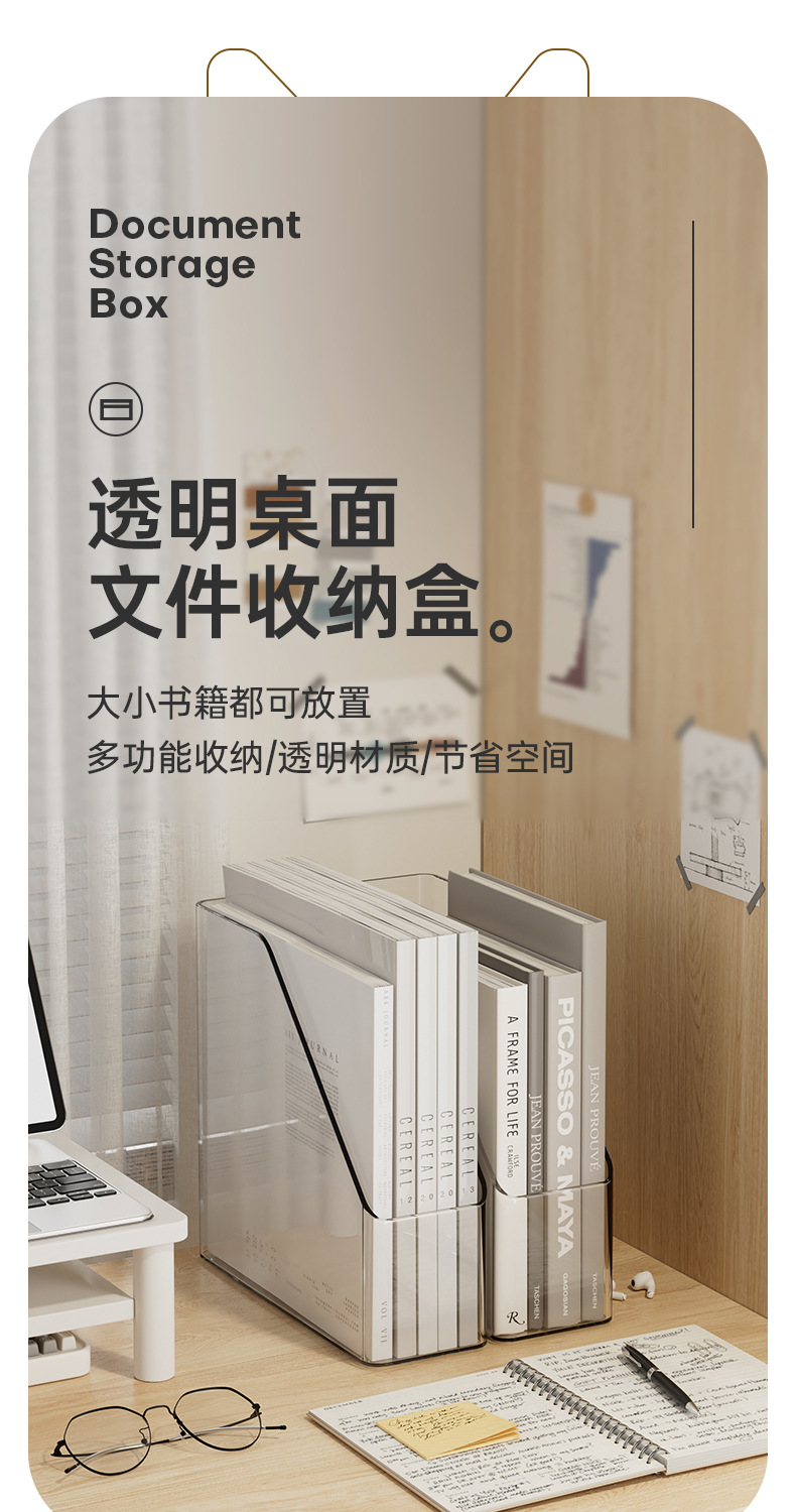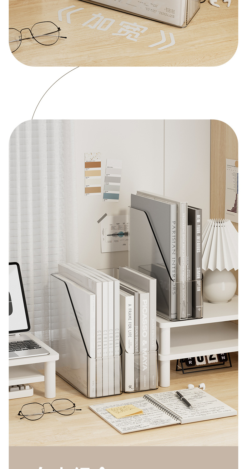 간단한 스타일 파일 데스크톱 저장 상자 회색 투명 기숙사 책상 문구 책 보관 랙 대용량 사무실스토어 가기