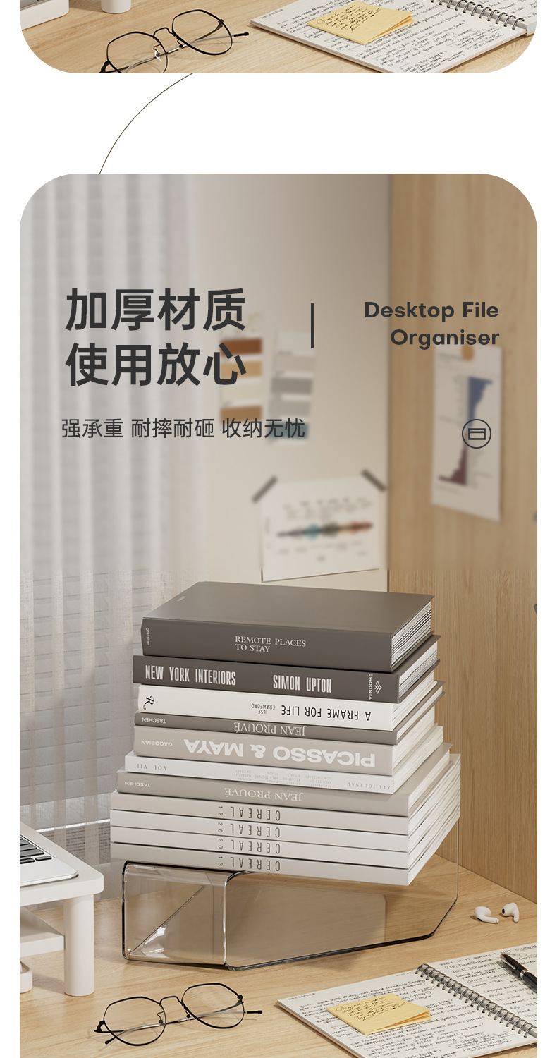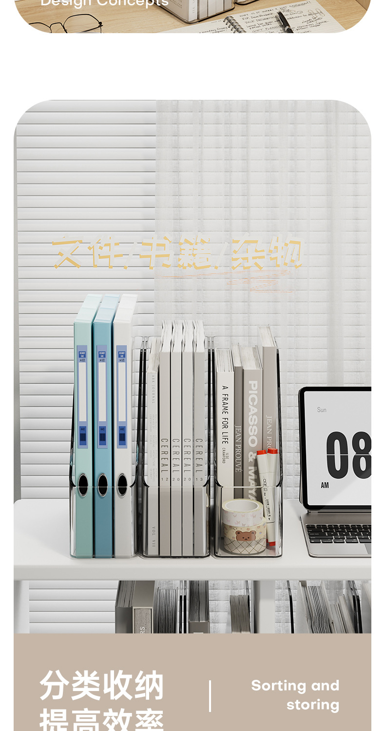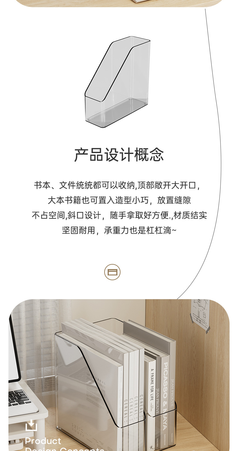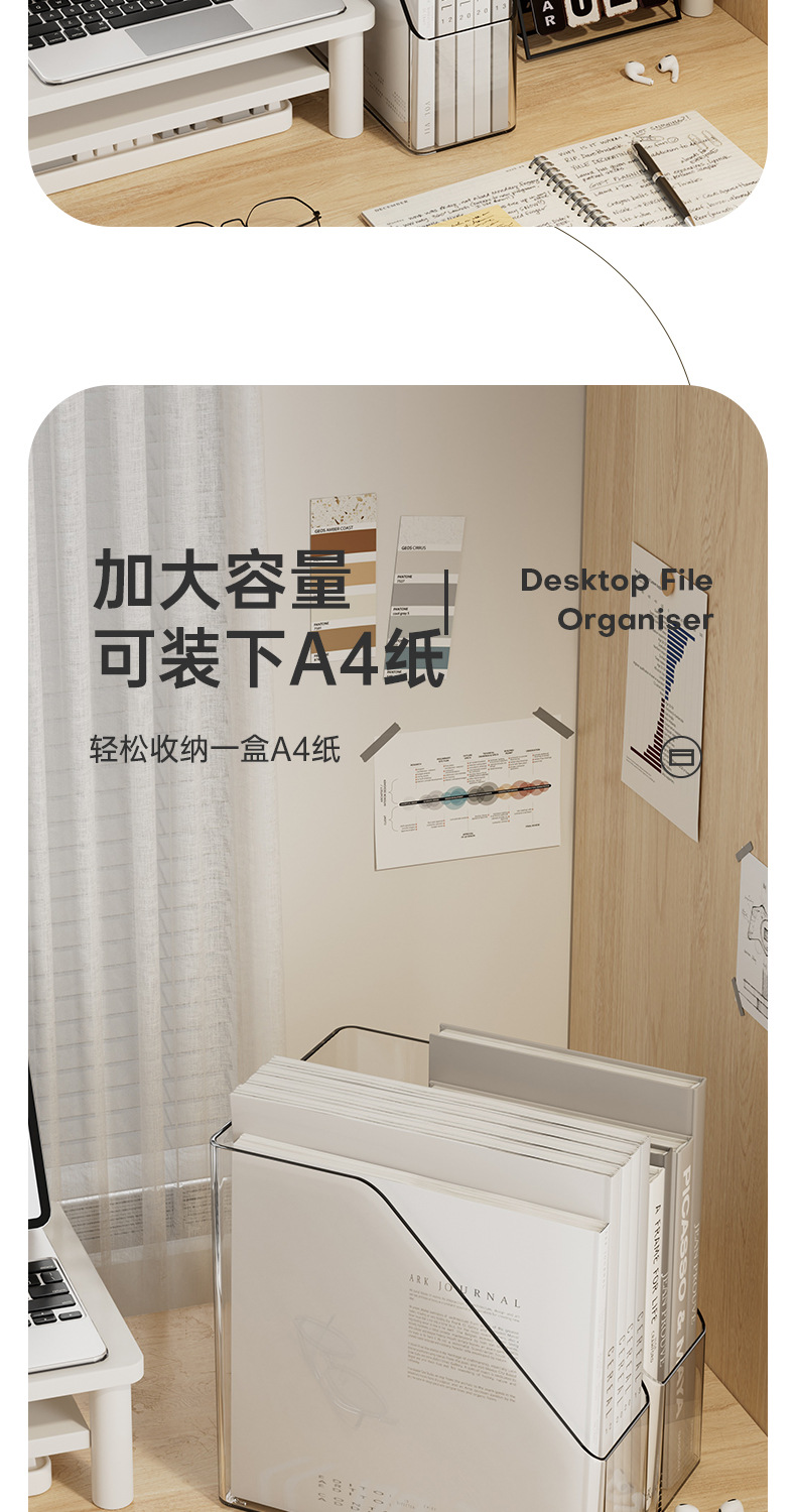 간단한 스타일 파일 데스크톱 저장 상자 회색 투명 기숙사 책상 문구 책 보관 랙 대용량 사무실스토어 가기