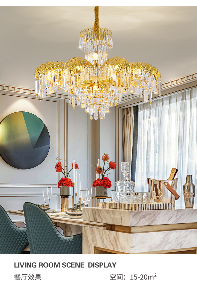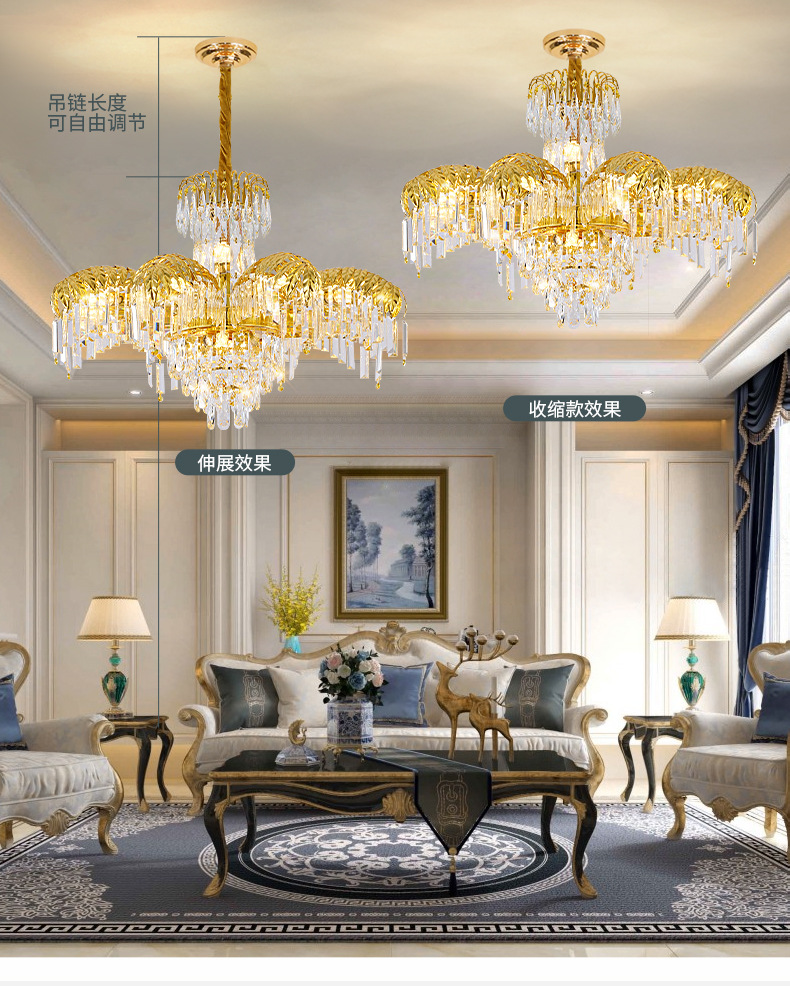 프랑스 샹들리에 거실 침실 식당 크리스탈 램프 유럽 고급 빌라 듀플렉스 건물 호텔 분위기 중산 램프