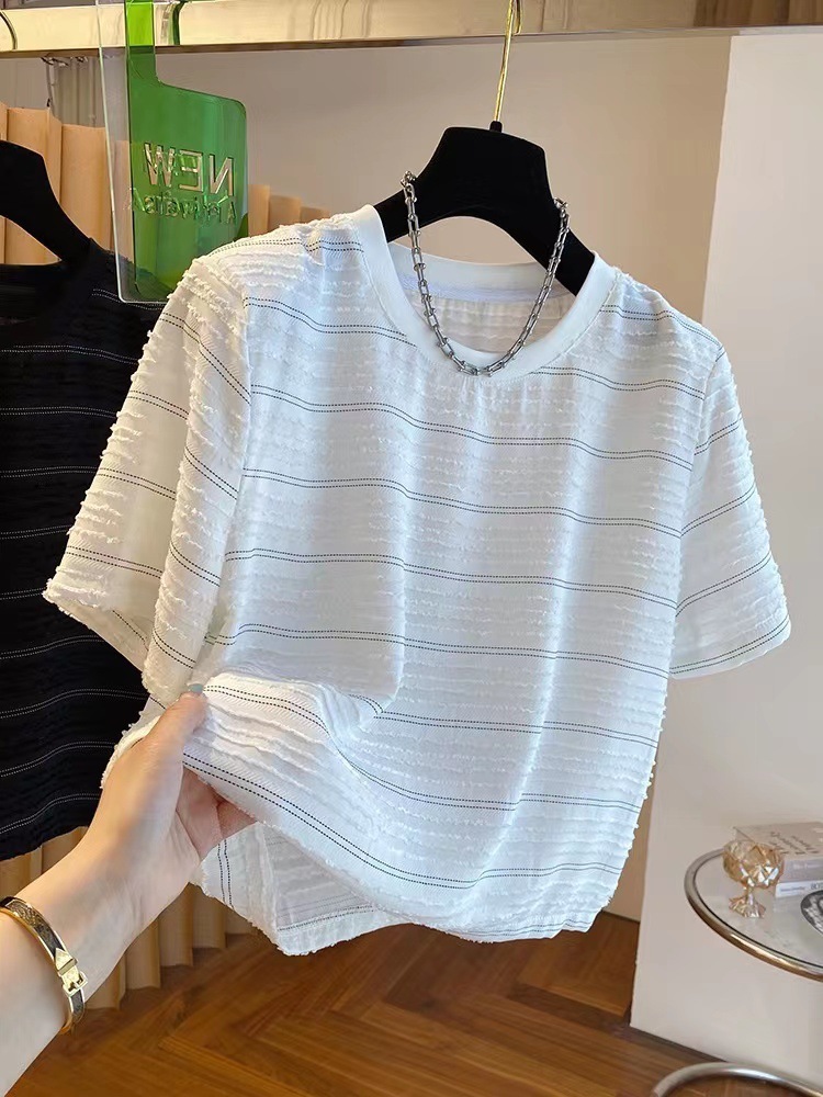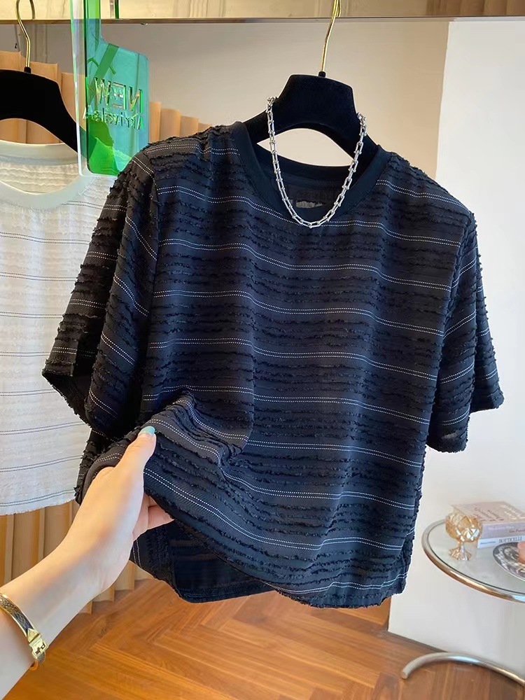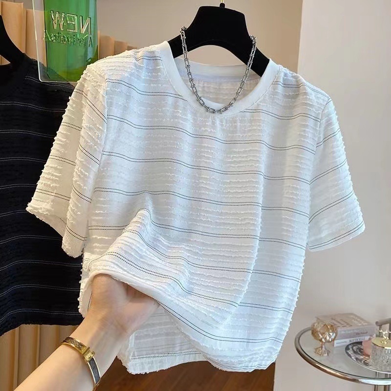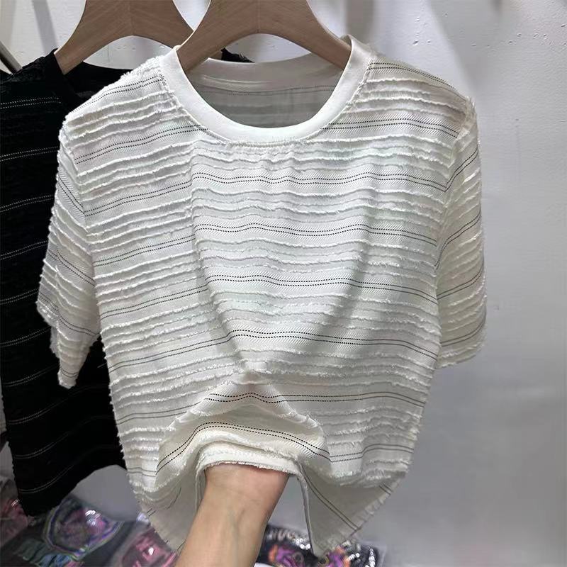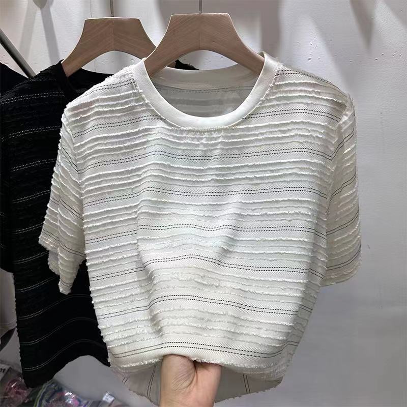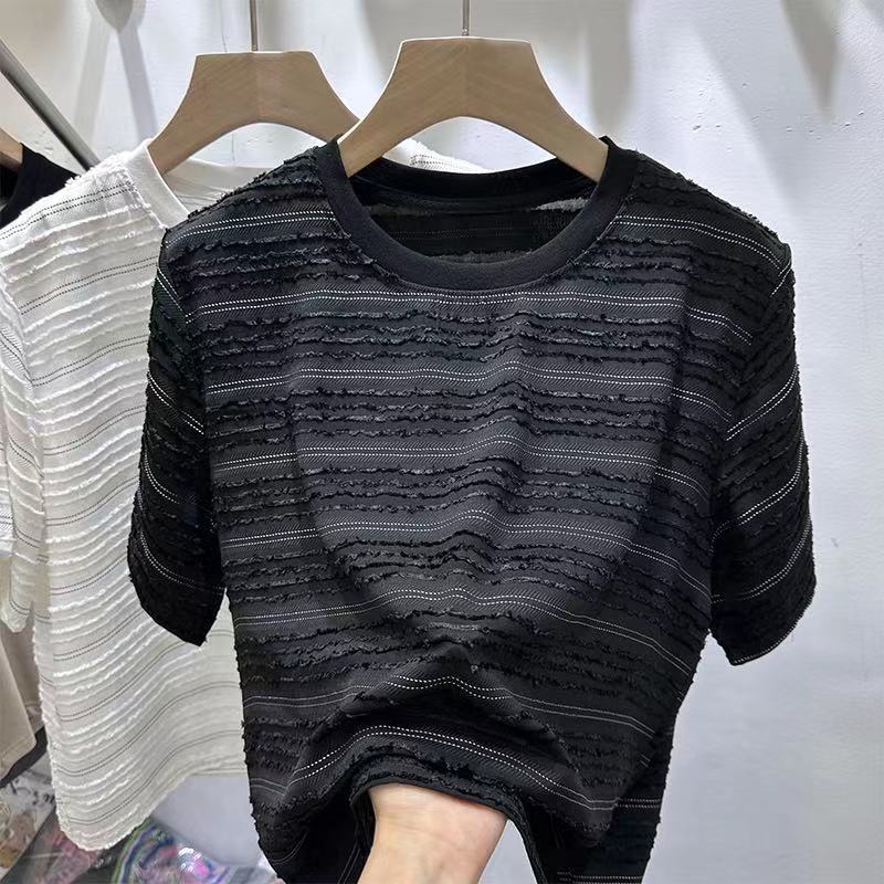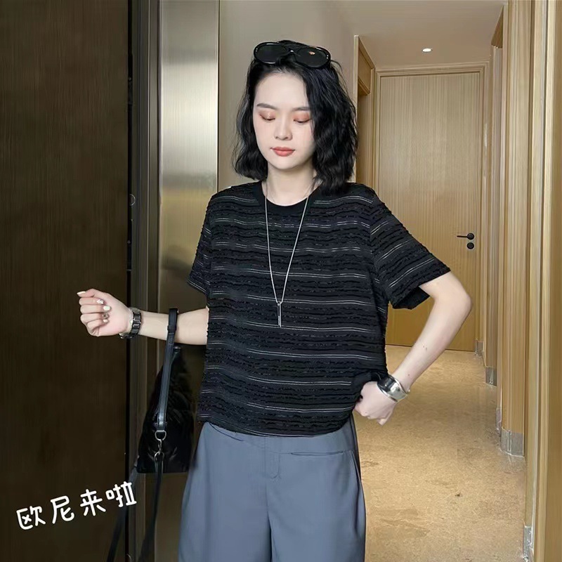 니치 디자인 크루 넥 반팔 티셔츠 여자 2025 년 여름 한국식 올매치 루즈 스위트 쉬폰 셔츠 탑스토어 가기