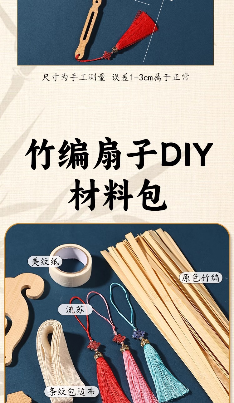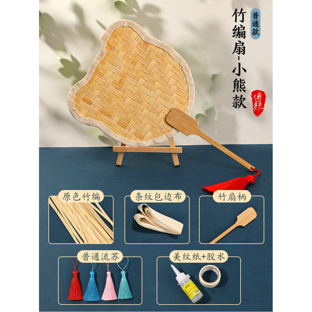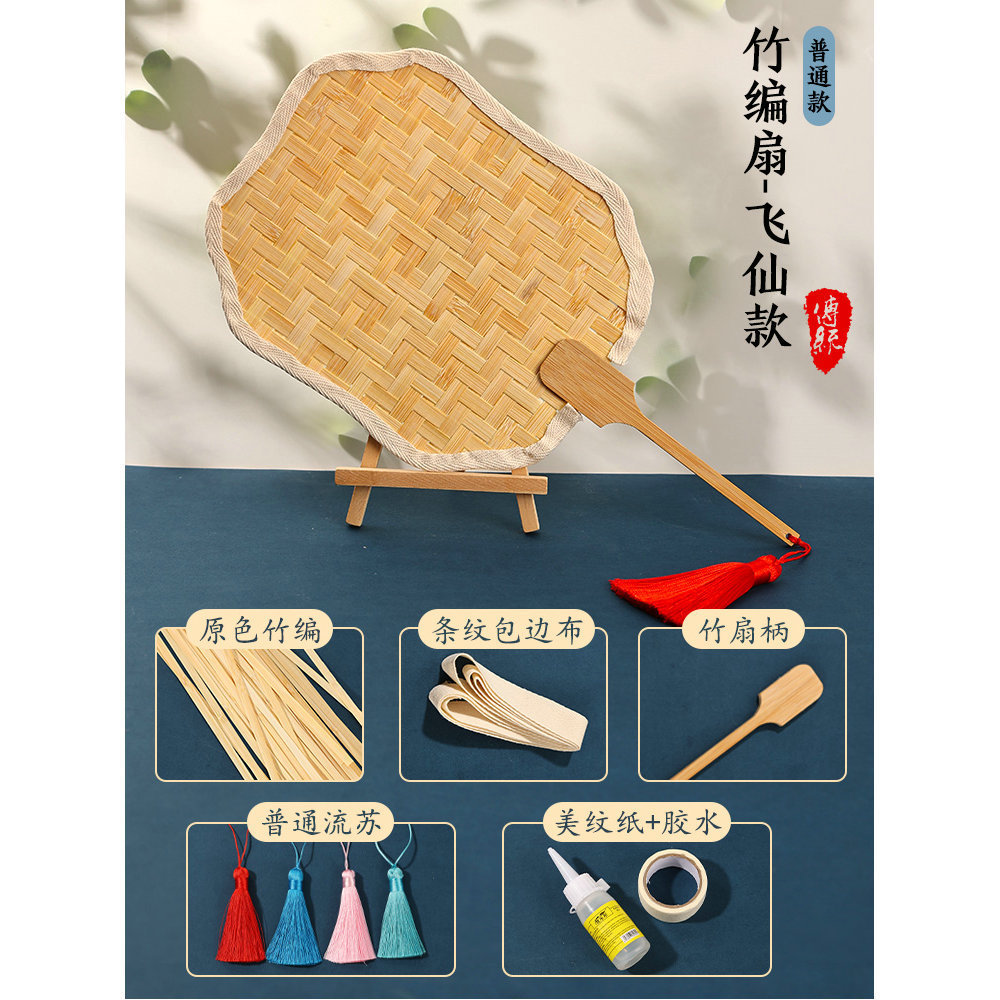 무형 문화 유산 수제 대나무 팬 DIY 소재 가방 중국 스타일 그룹 팬 중국 스타일 짠 Pu 팬 어린이 부모-자녀 활동스토어 가기