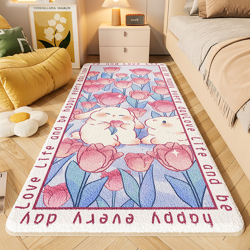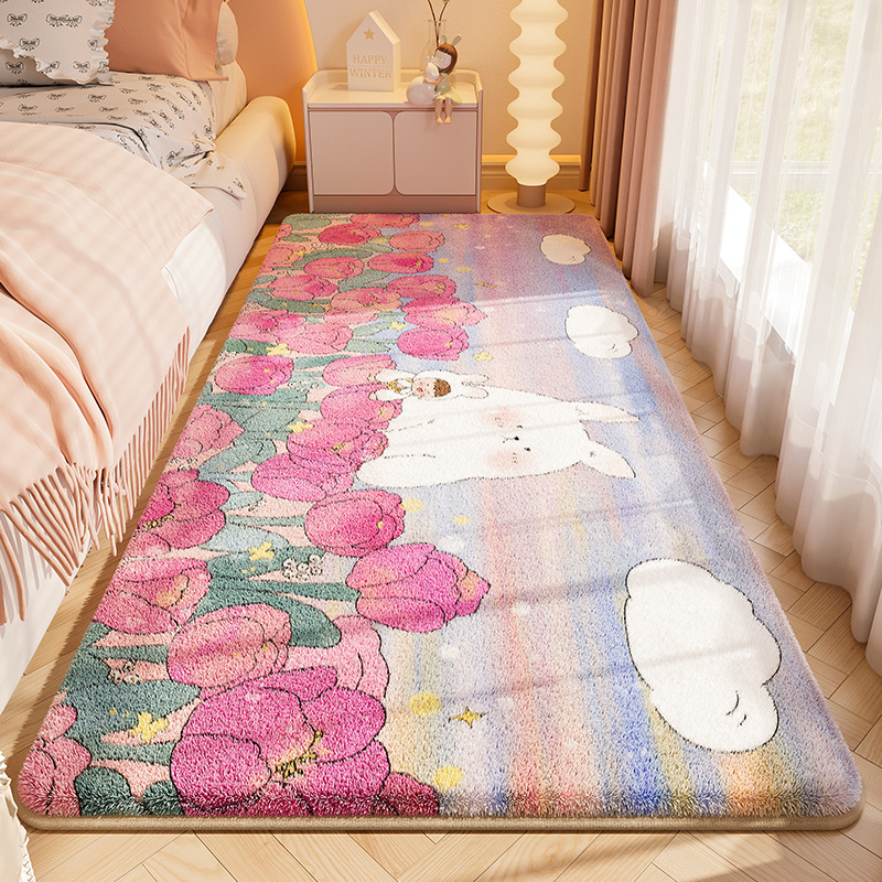 카펫 얼룩 방지 및 사용하기 쉬운 미끄럼 방지 매트 만화 침실 침실 담요 가정용 냉각 발 매트 베이 창 매트 모든 시즌 유니버설