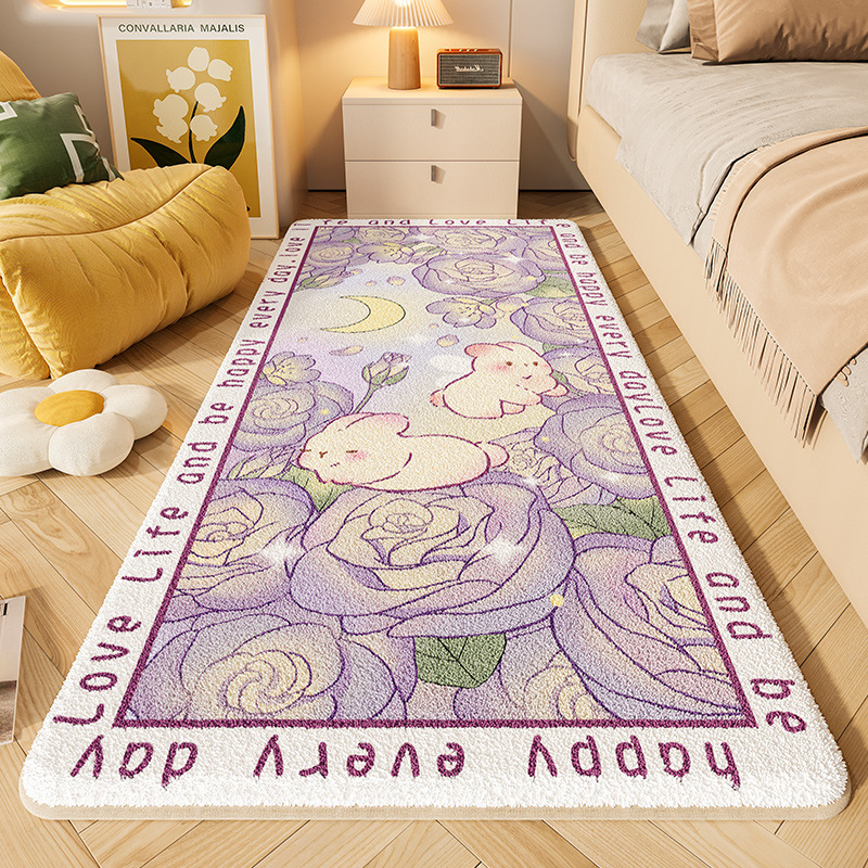 카펫 얼룩 방지 및 사용하기 쉬운 미끄럼 방지 매트 만화 침실 침실 담요 가정용 냉각 발 매트 베이 창 매트 모든 시즌 유니버설스토어 가기