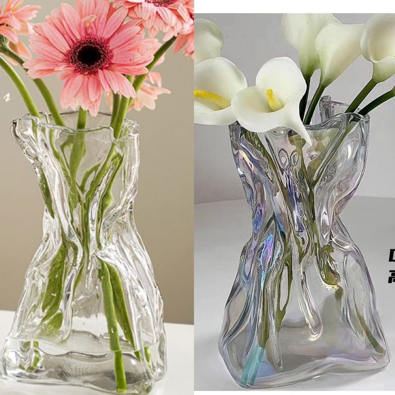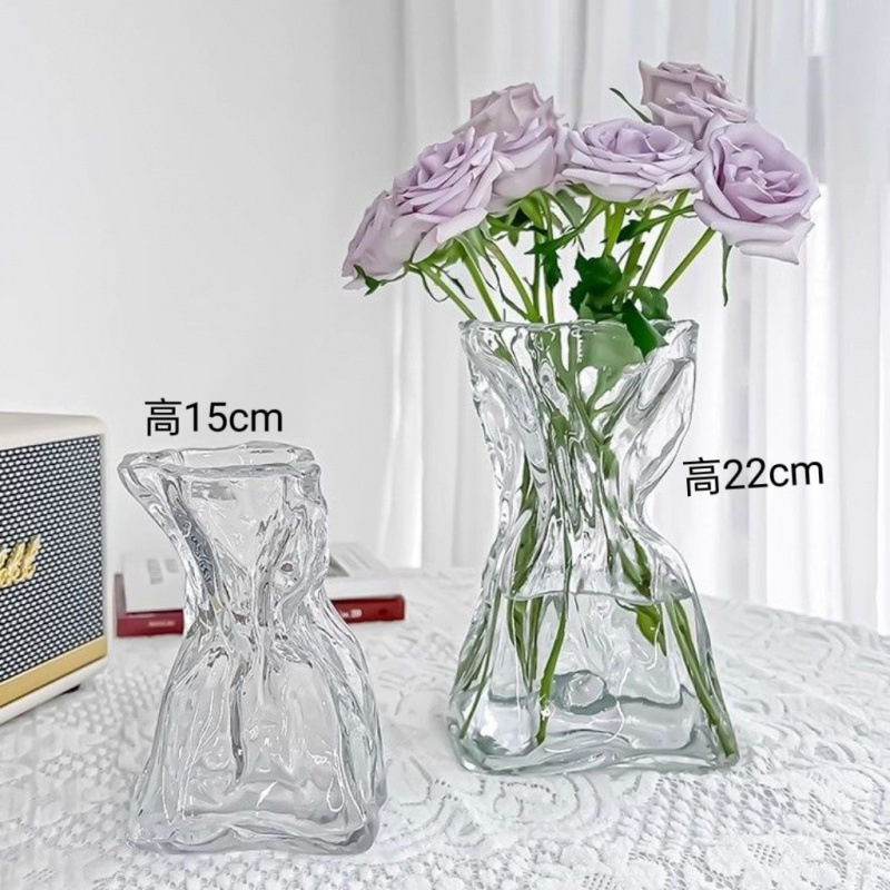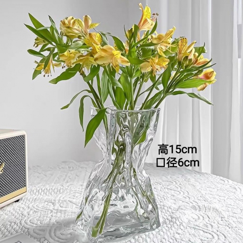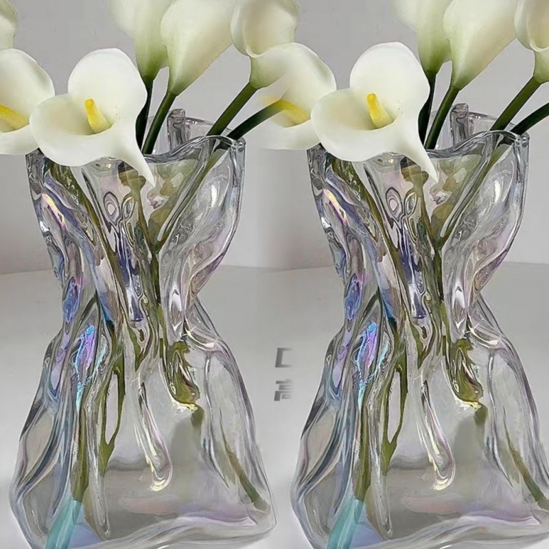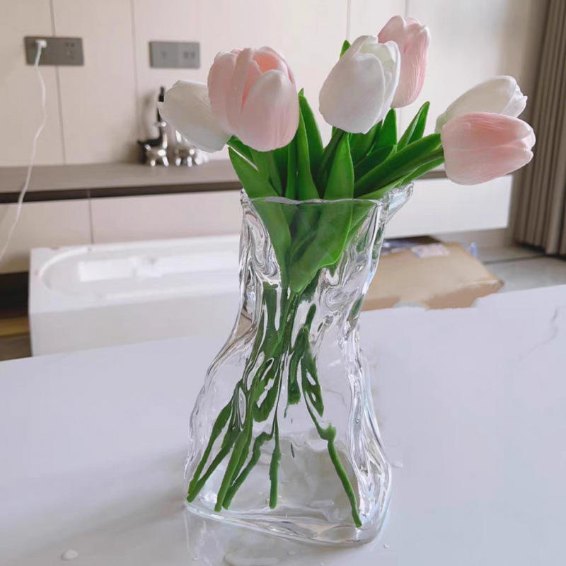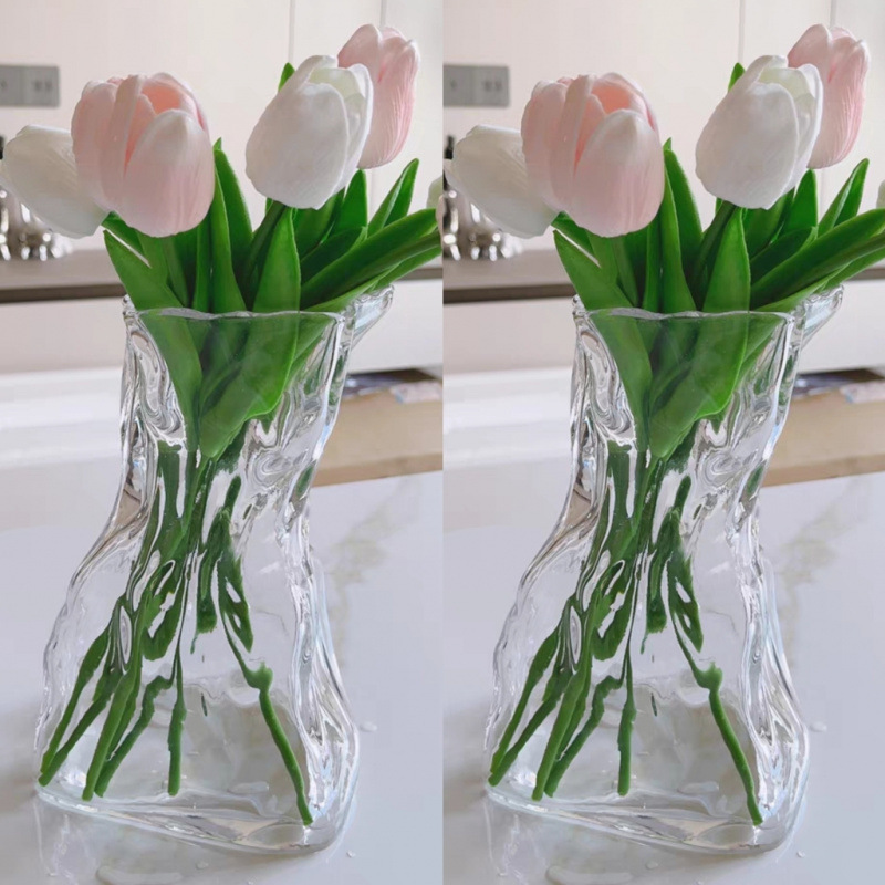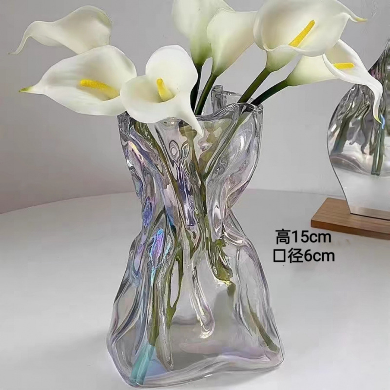 고급 감각 간단한 창조적 인 불규칙한 홈스테이 꽃병 투명 유리 거실 데스크탑 꽃 배열 물 기르기 장식 장식품