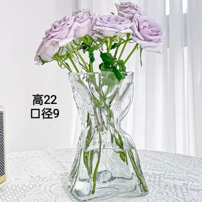고급 감각 간단한 창조적 인 불규칙한 홈스테이 꽃병 투명 유리 거실 데스크탑 꽃 배열 물 기르기 장식 장식품스토어 가기