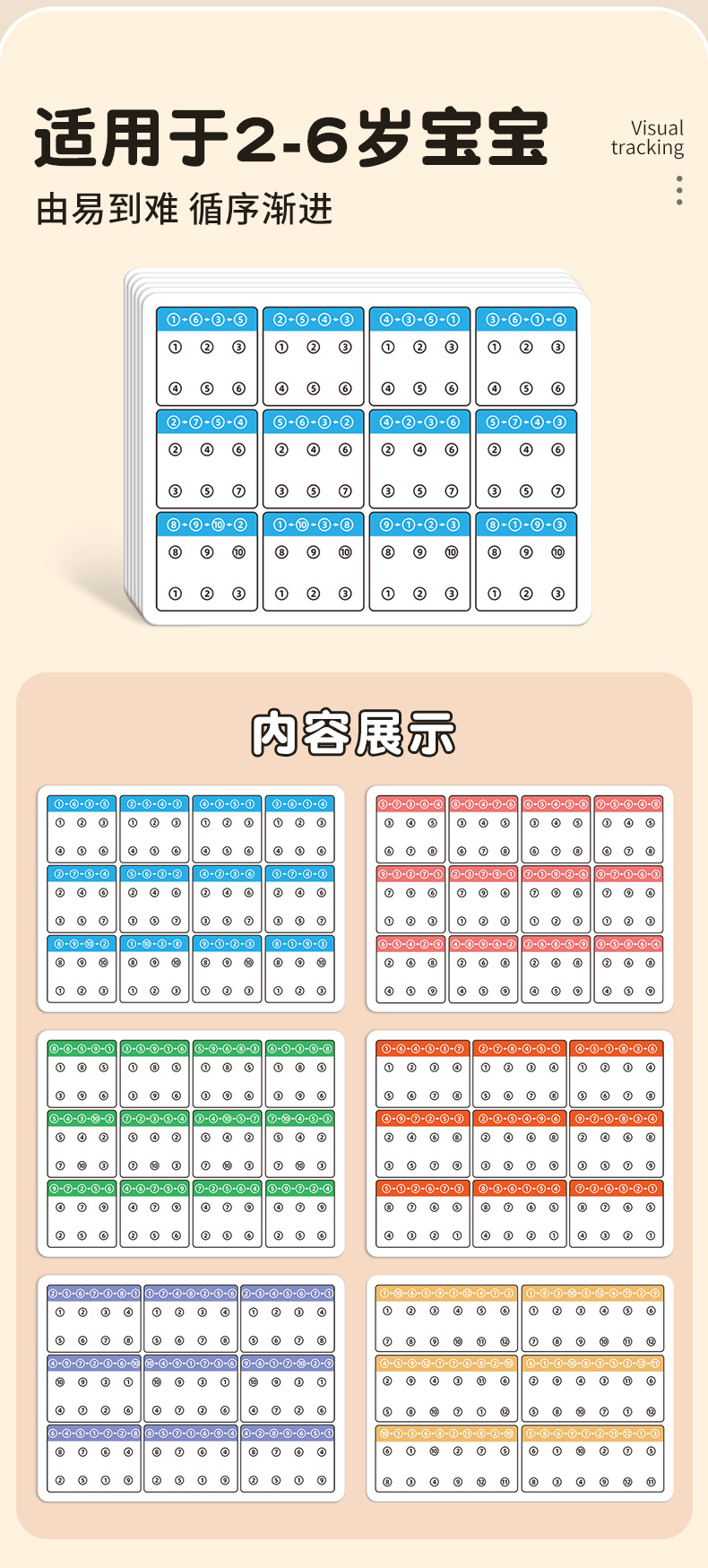 시각적 추적, 집중, 교육 훈련, 장난감 카드, 차별 및 기억, 어린이 조기 교육, 인물 찾기, 손 눈 조정 다이어그램