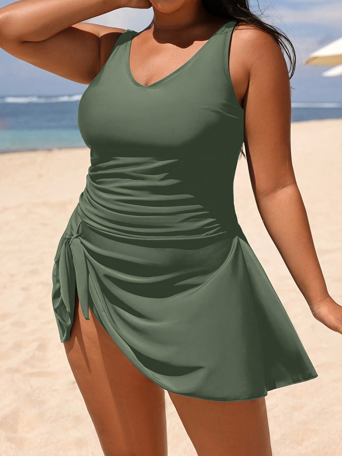 새로운 수영복 여성 플러스 사이즈 원피스 스커트 수영복 솔리드 컬러 스포츠 수영복 플러스 사이즈 슬리밍 수영복스토어 가기