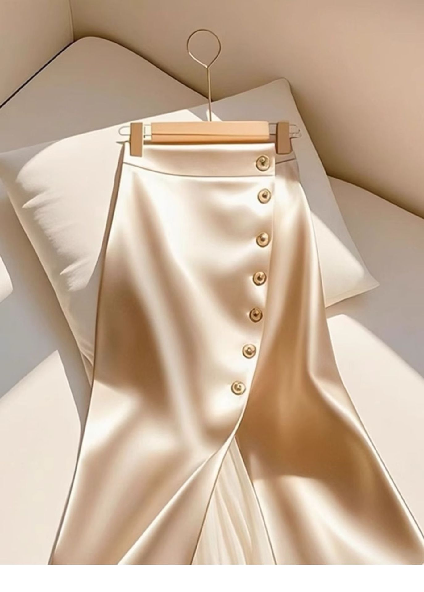 2025 올해 인기있는 고급 슈퍼 잘 생긴 살구색 바느질 아세테이트 새틴 A 자형 대형 스커트 스커트 여성용 봄