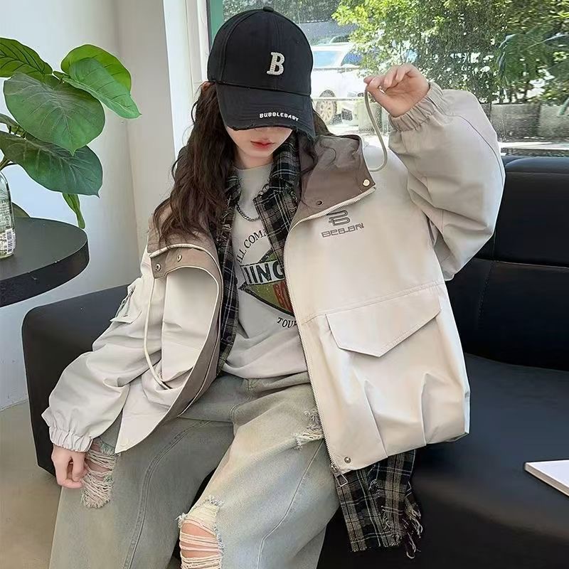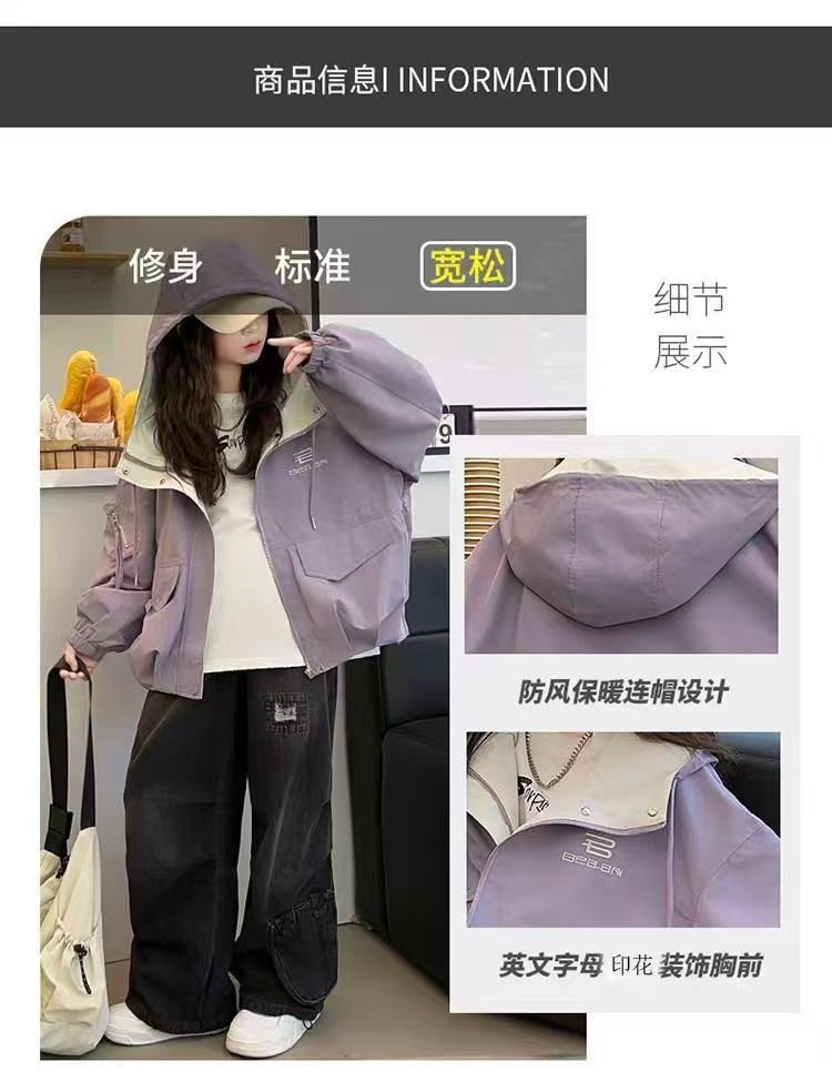 여자 봄, 가을 대형 포켓 작업 재킷 2025 새로운 중대형 아동 패션 캐주얼 후드 재킷 재킷 유행스토어 가기